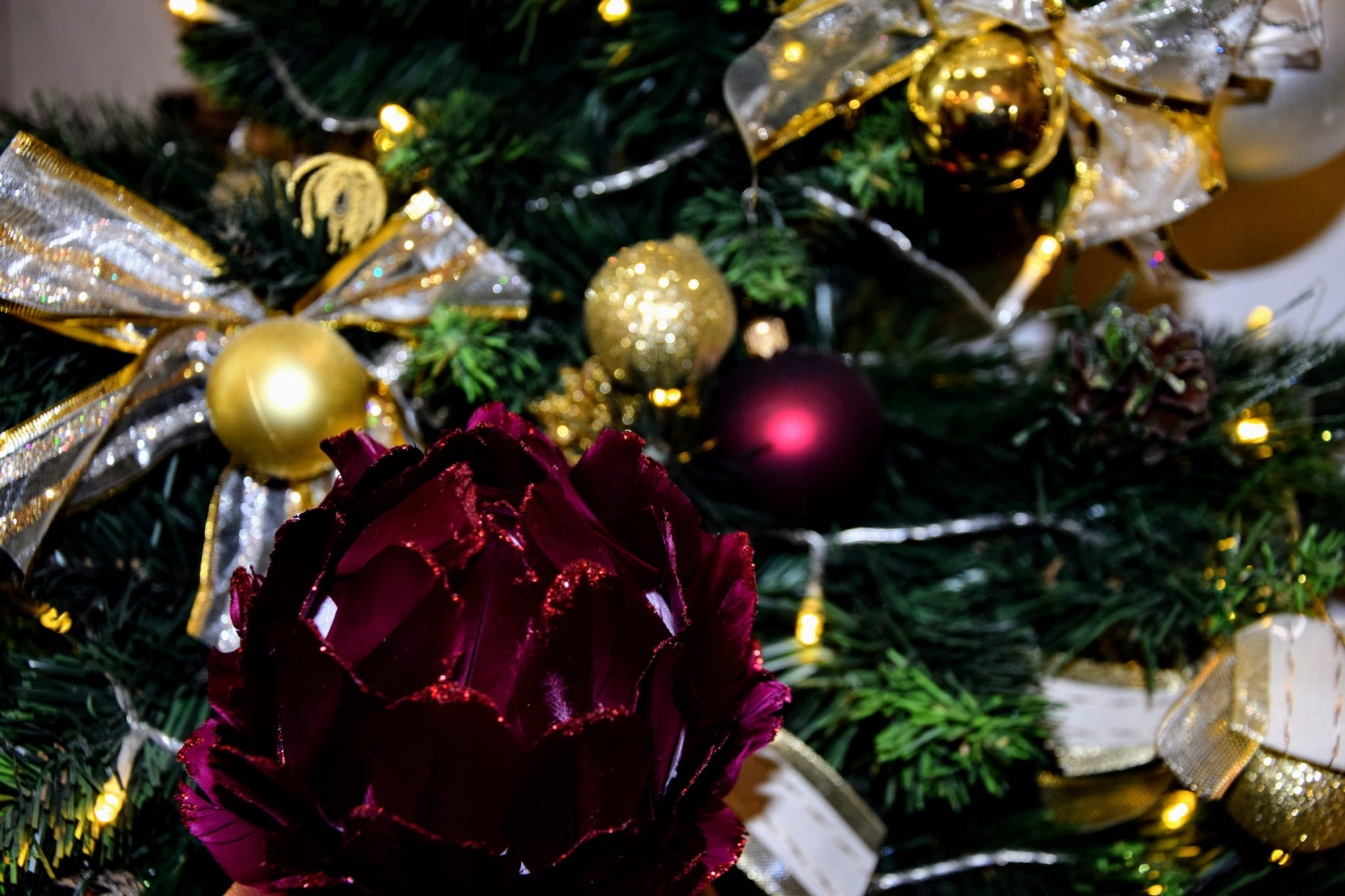 Wykonany ze styropianu i piór kwiat na eleganckiej wstążce będzie oryginalną ozdobą nie tylko choinki.