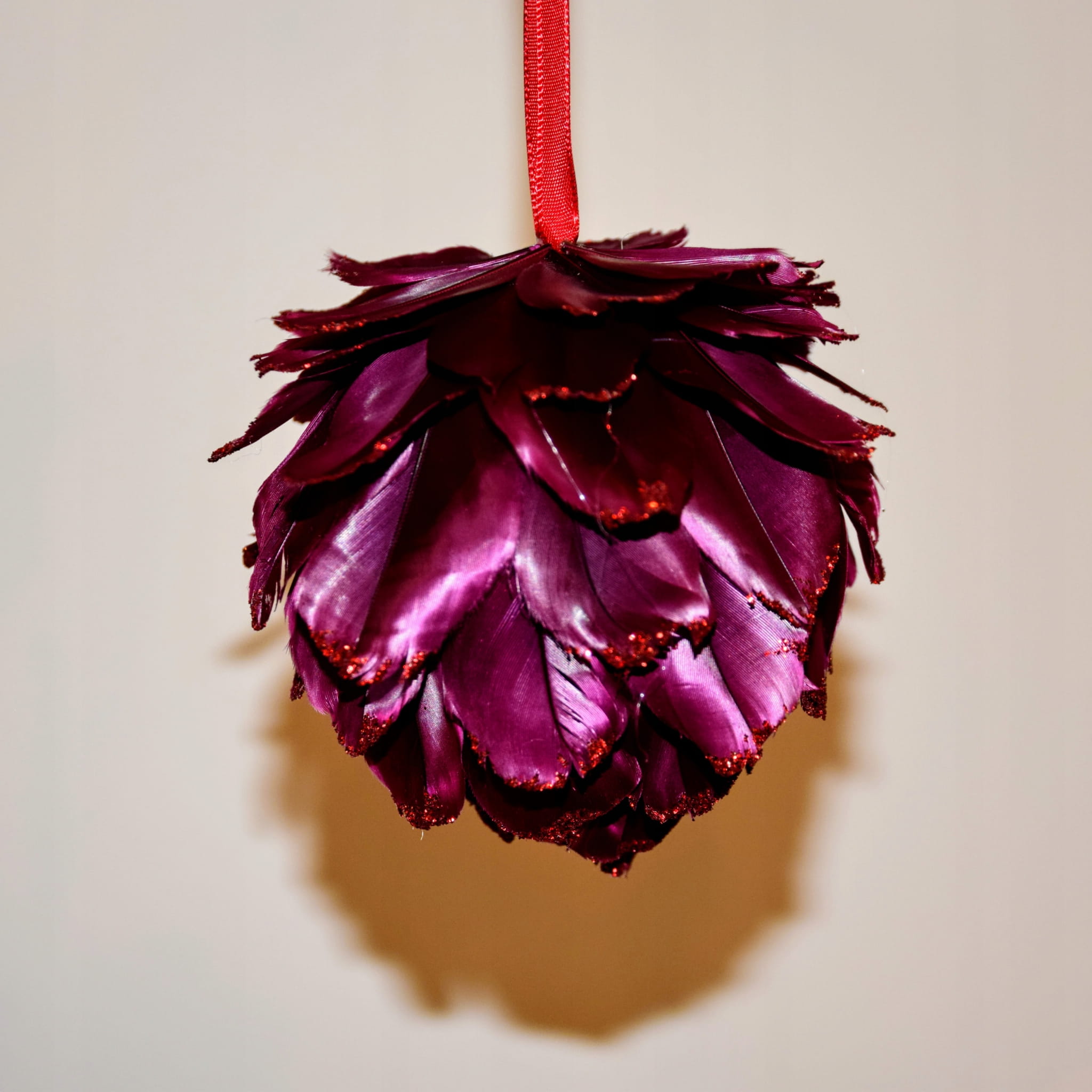 WISZĄCY KWIAT PIÓRA BORDO mały 10x8/18cm