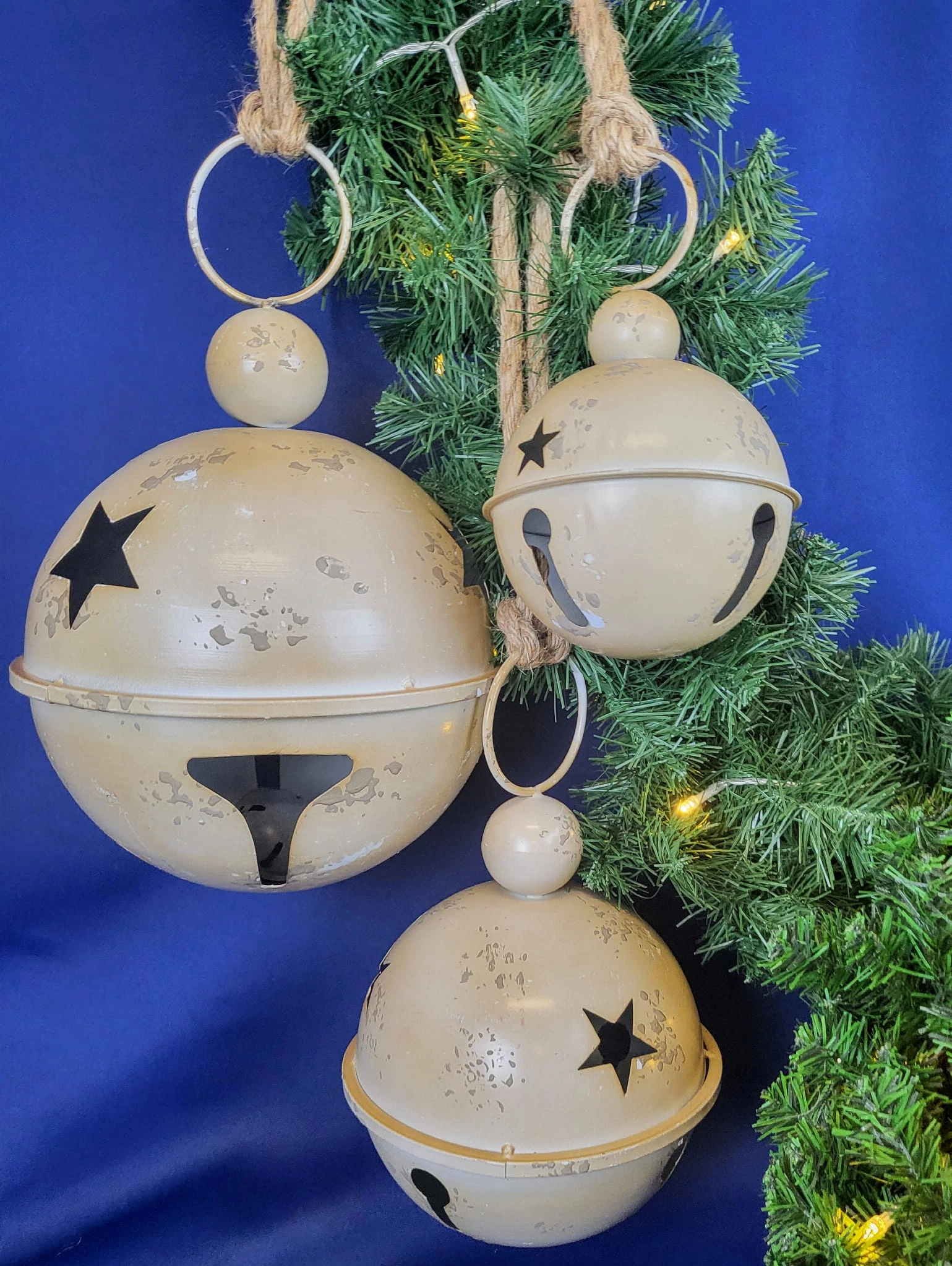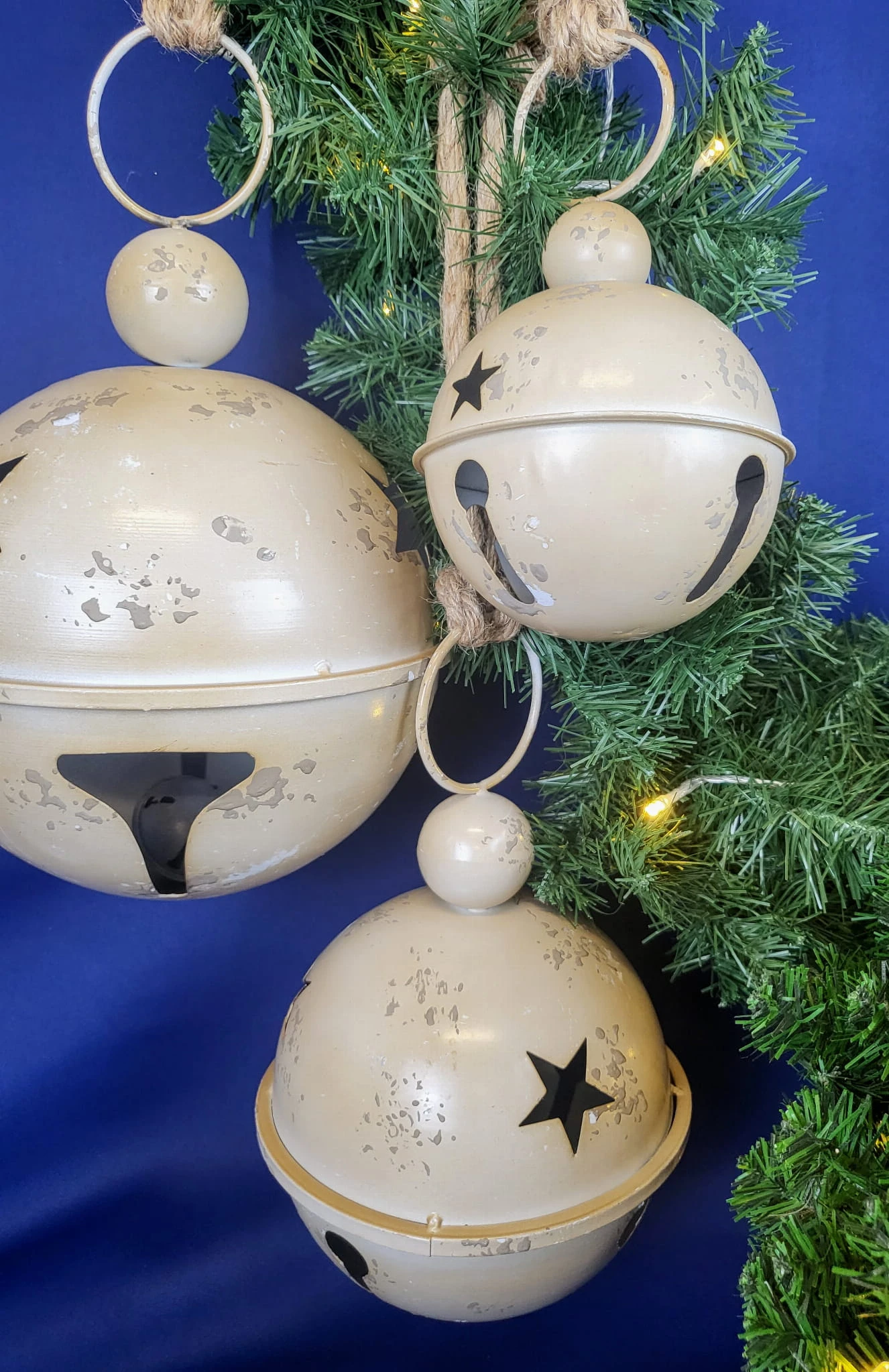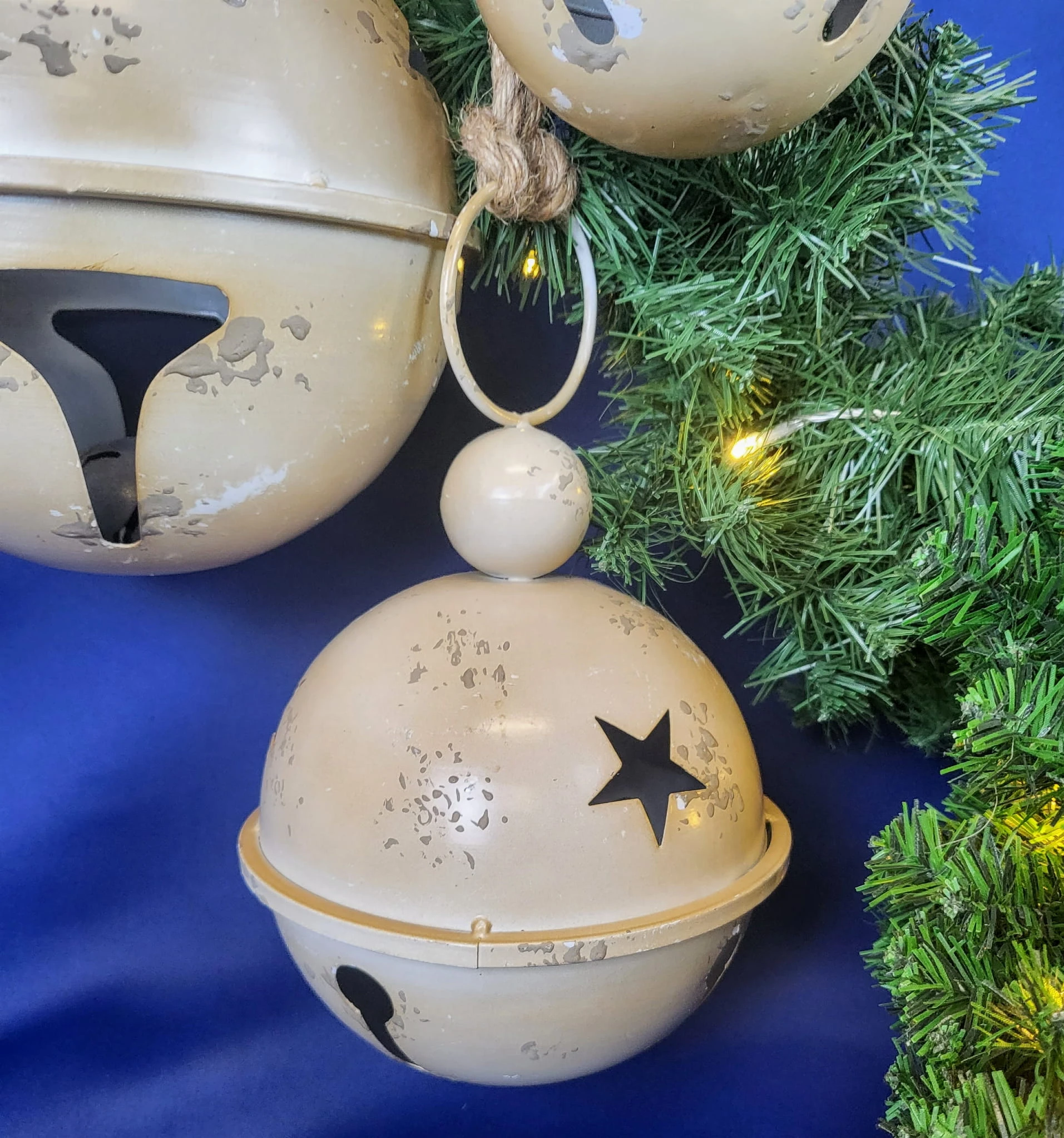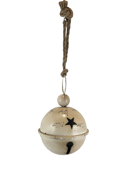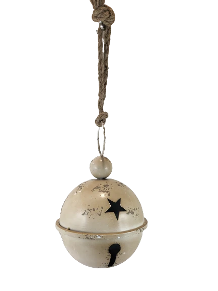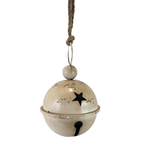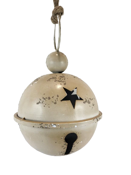 WISZĄCY METALOWY DZWONEK BEŻOWY 17 x 27 CM