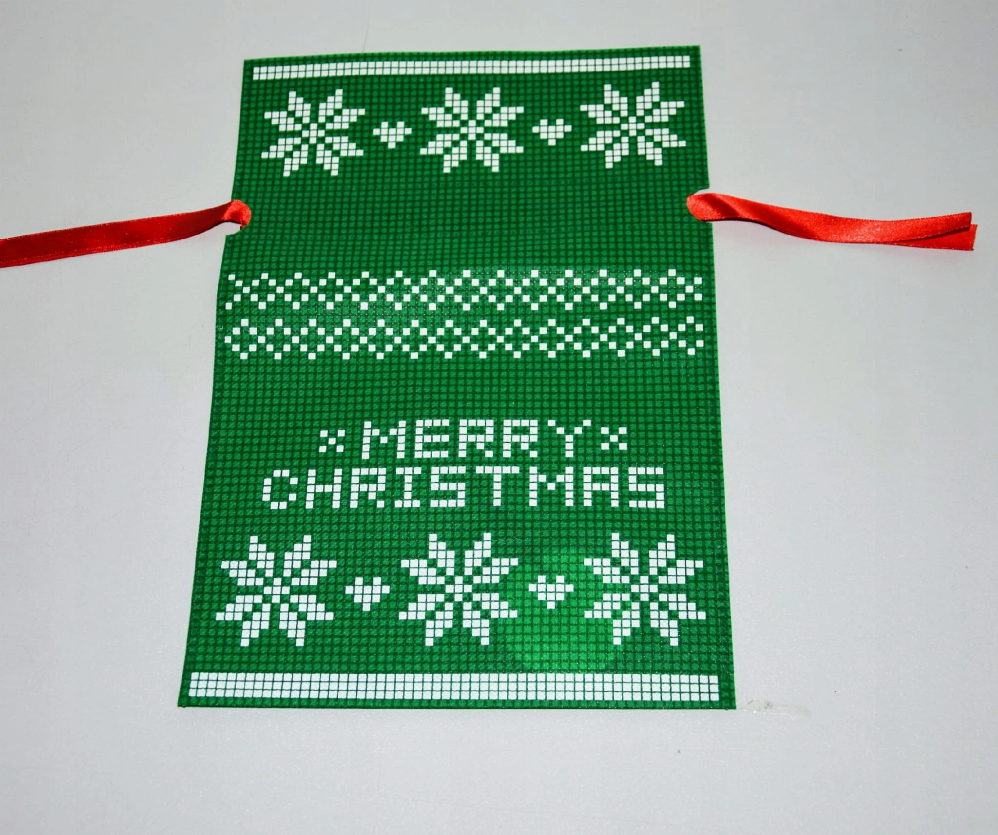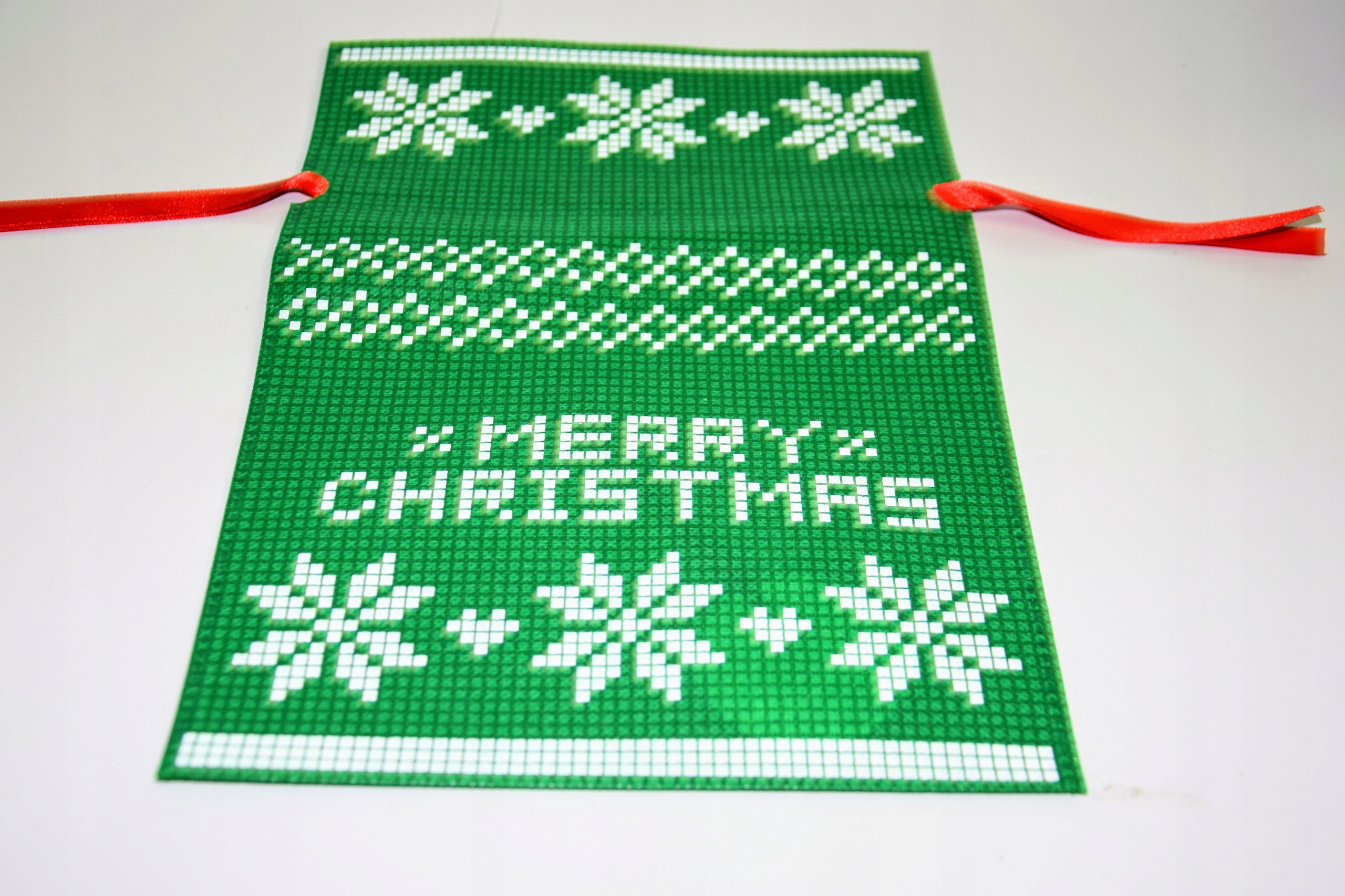 Oryginalny, ładny i elegancki worek, z napisem " Wesołych Świąt " w języku angielskim.