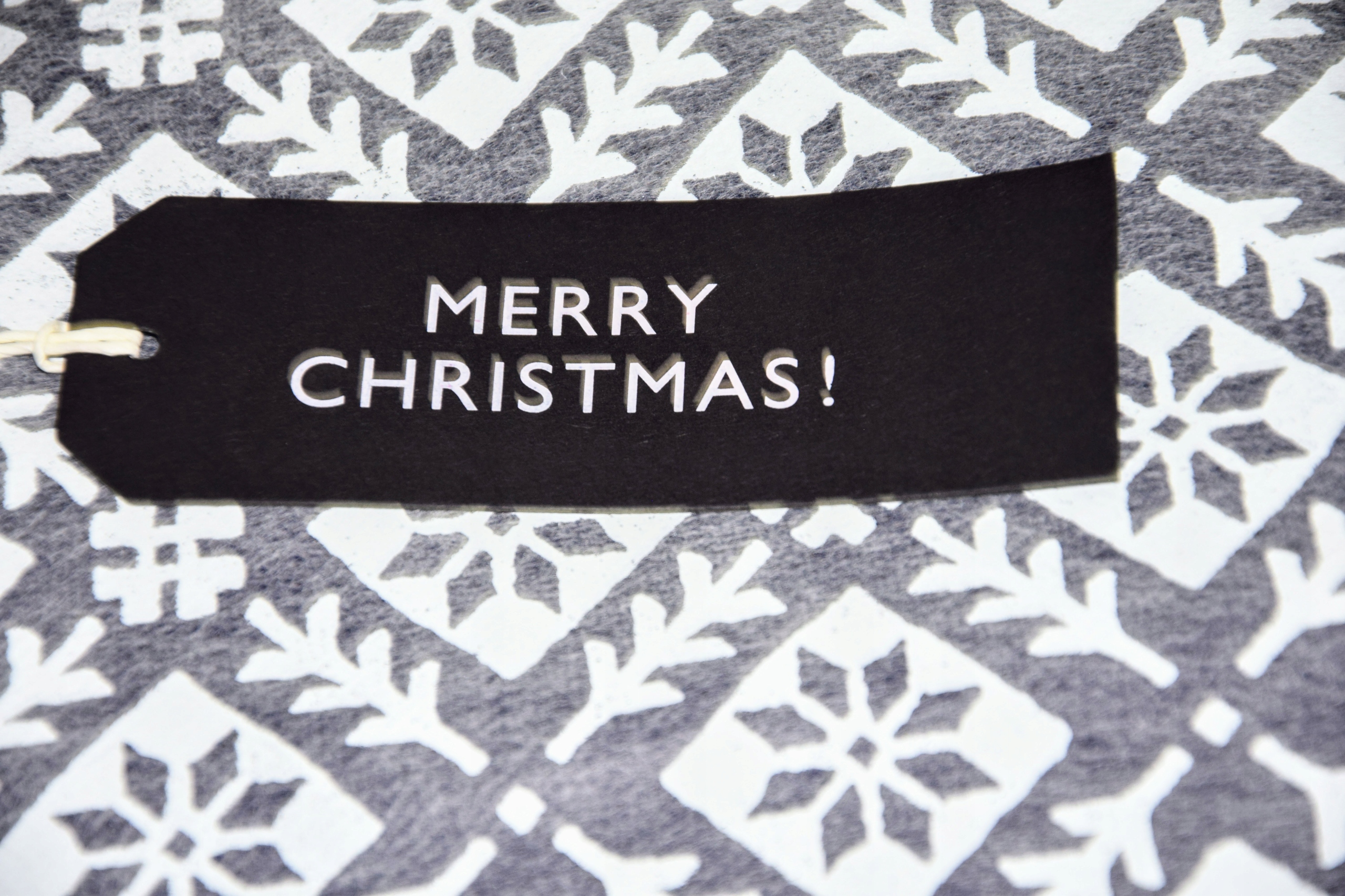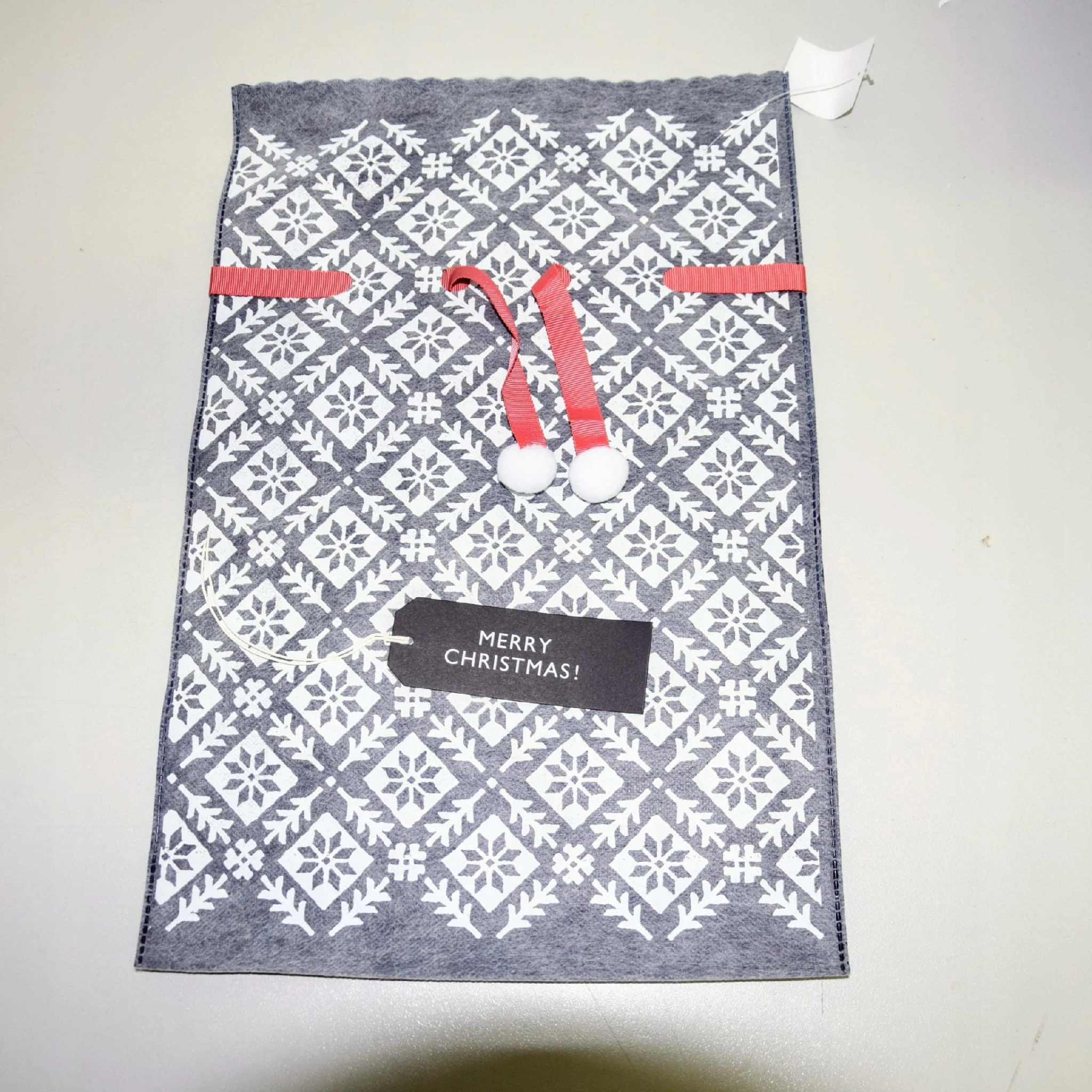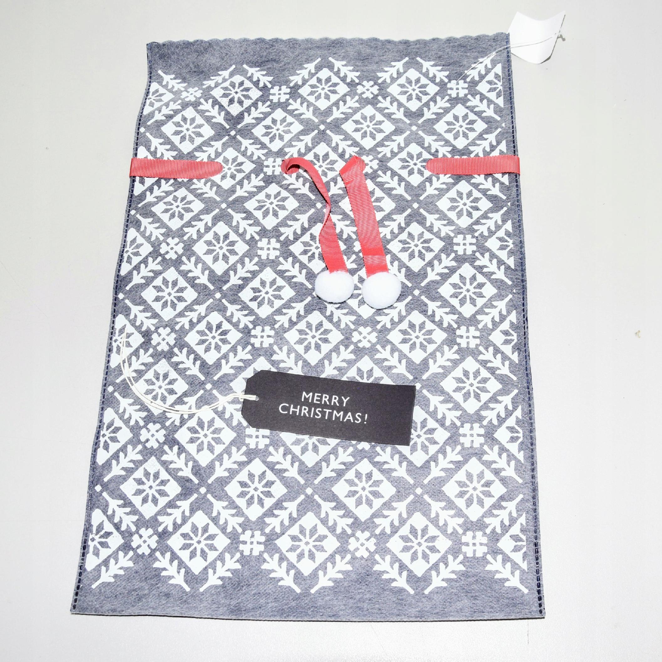 Oryginalny, ładny i elegancki worek, z napisem " Wesołych Świąt " w języku angielskim.