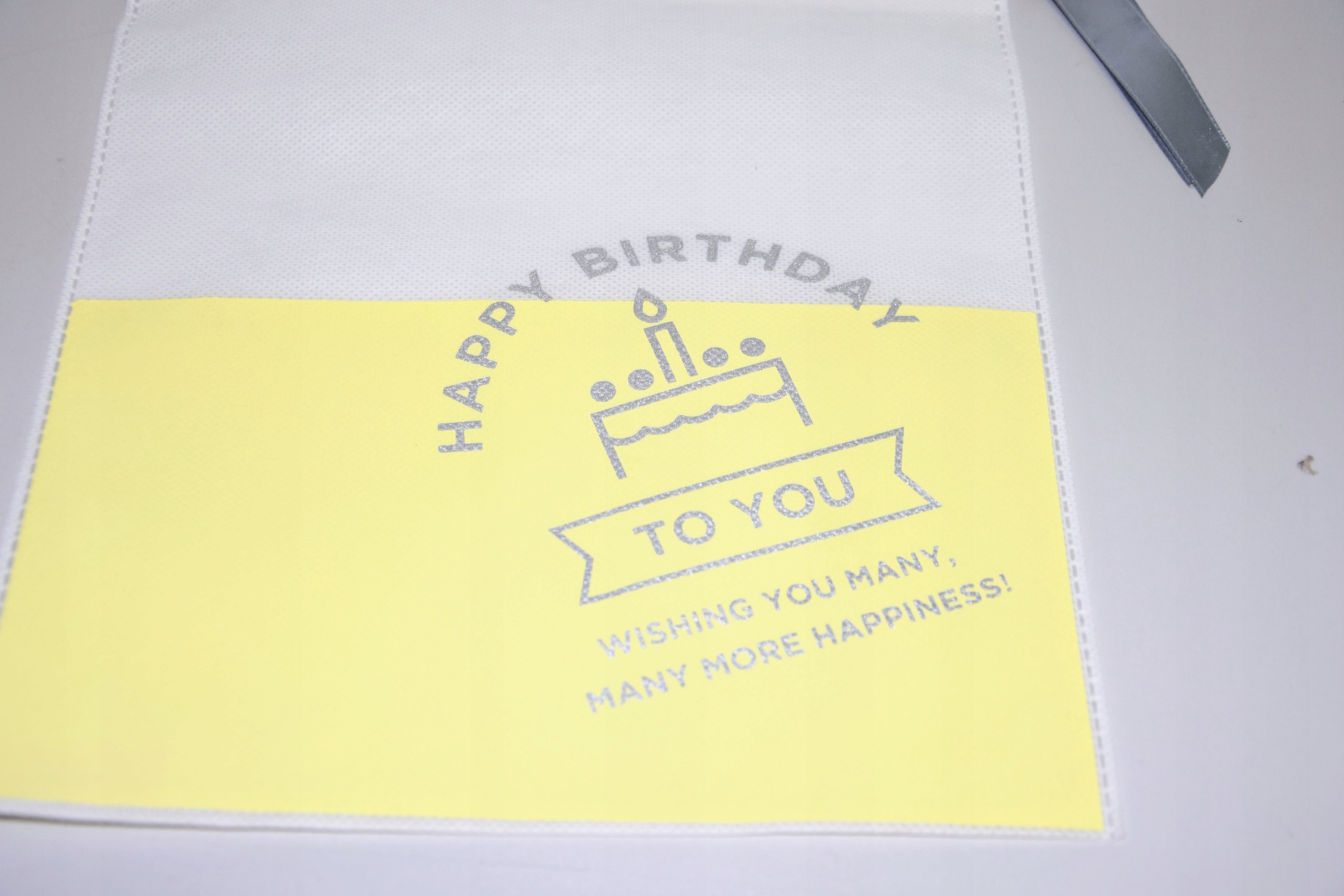Oryginalny, ładny i elegancki worek. Z napisem "Happy Birthday to You" w języku angielskim.