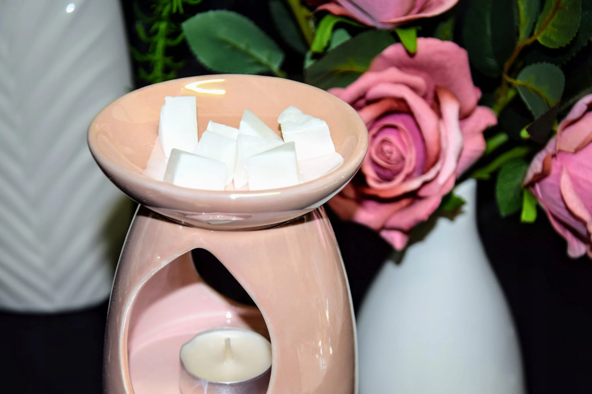 - należy umieścić dowolną ilość kostek na kominku, w dolnej części umieścić podgrzewacz tylu tealight