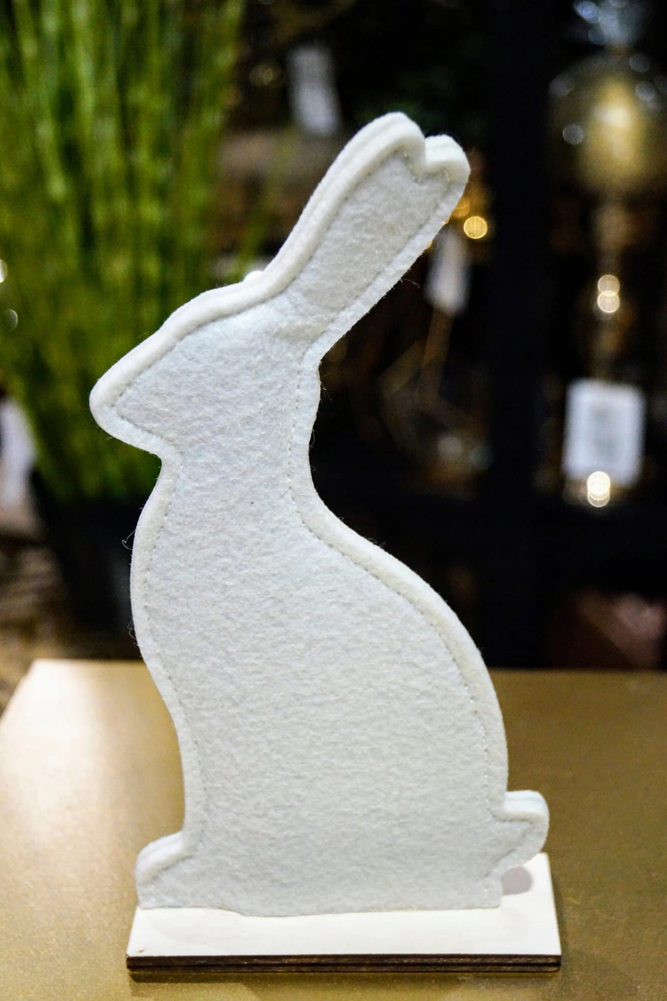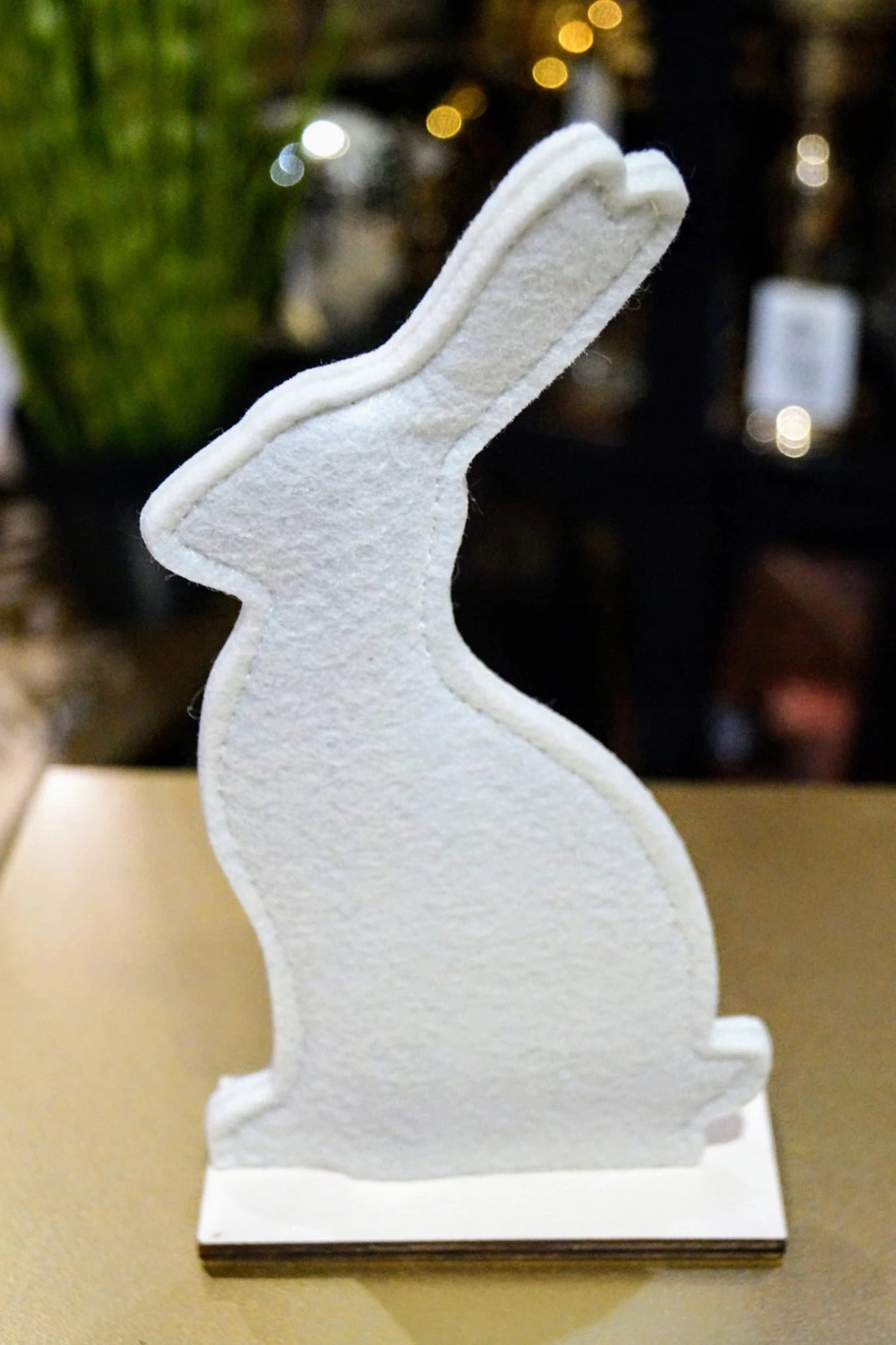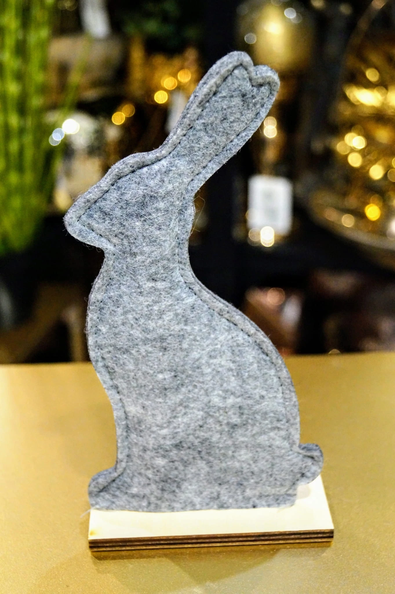Zając filcowy na drewnianej podstawce. Idealna ozdoba świąteczna. Świetnie sprawdzi się na wielkanocnym stole. Dostępny w dwóch kolorach.
