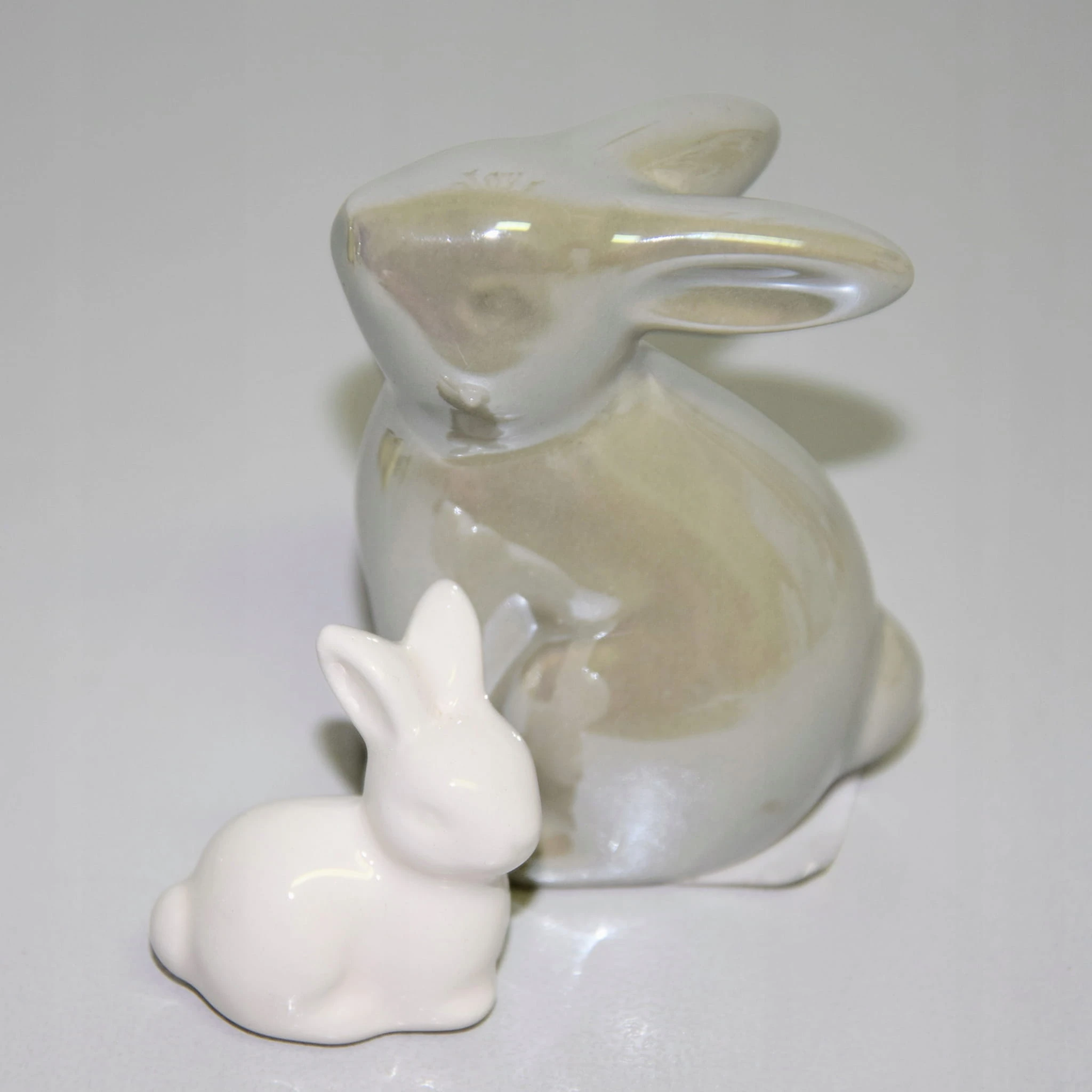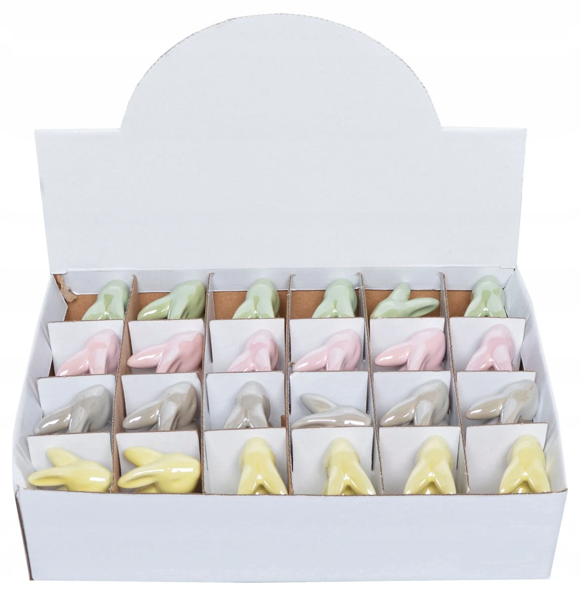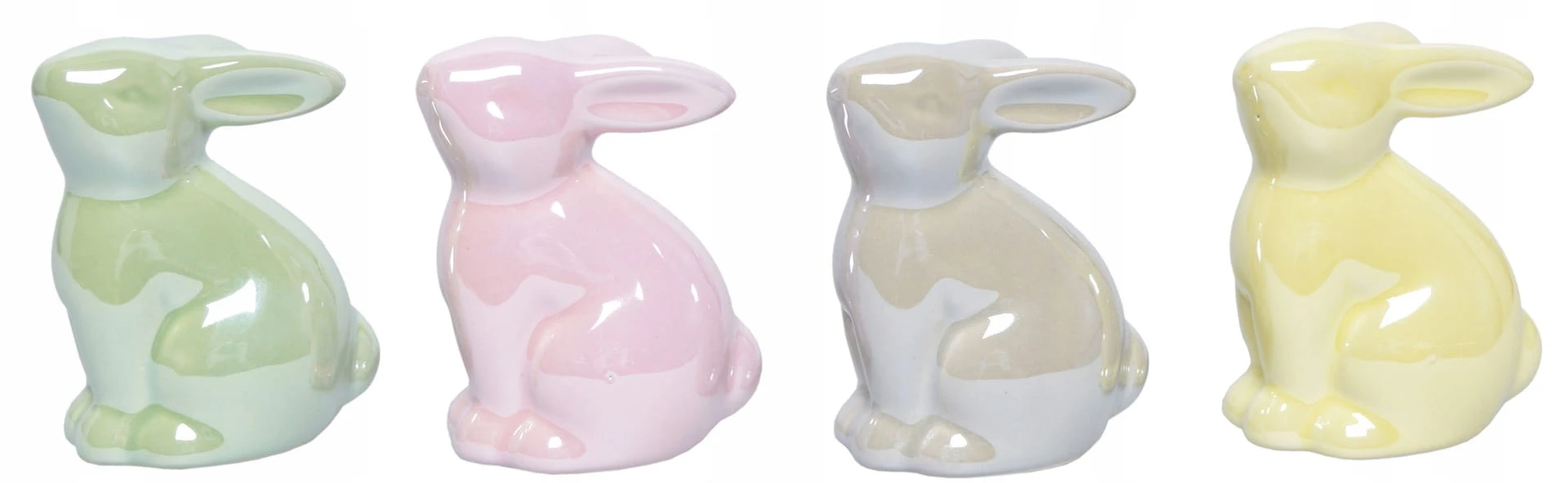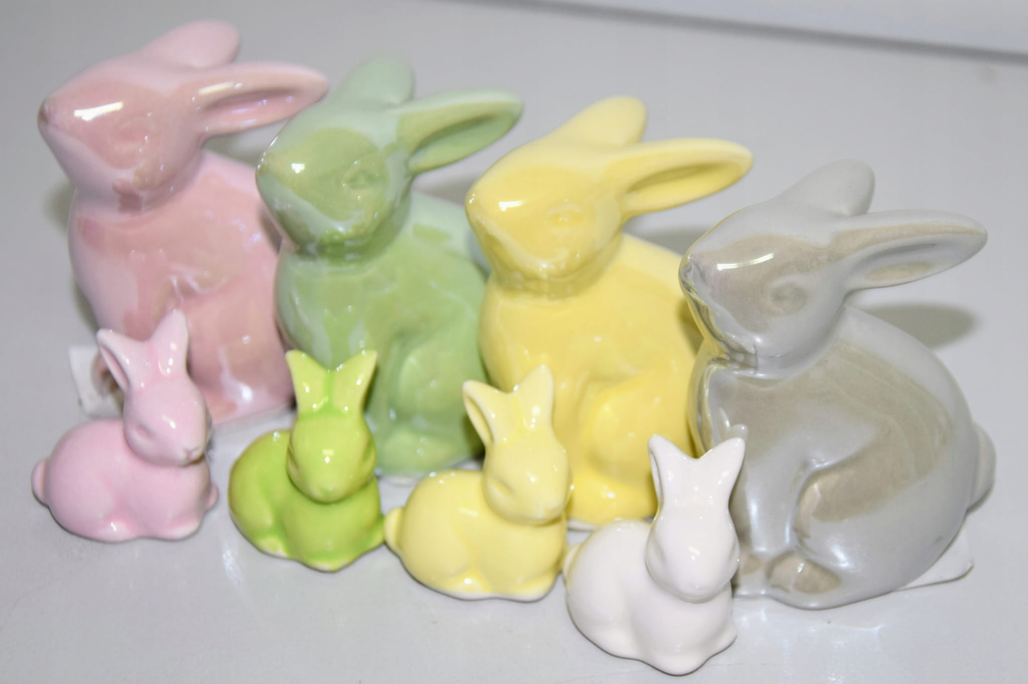 Dekoracyjny zając wielkanocny wykonany z ceramiki w 4 pastelowych kolorach.