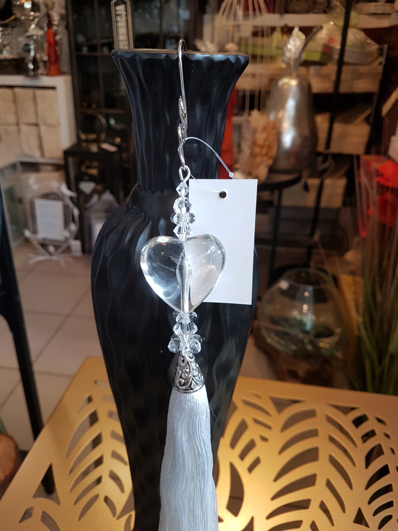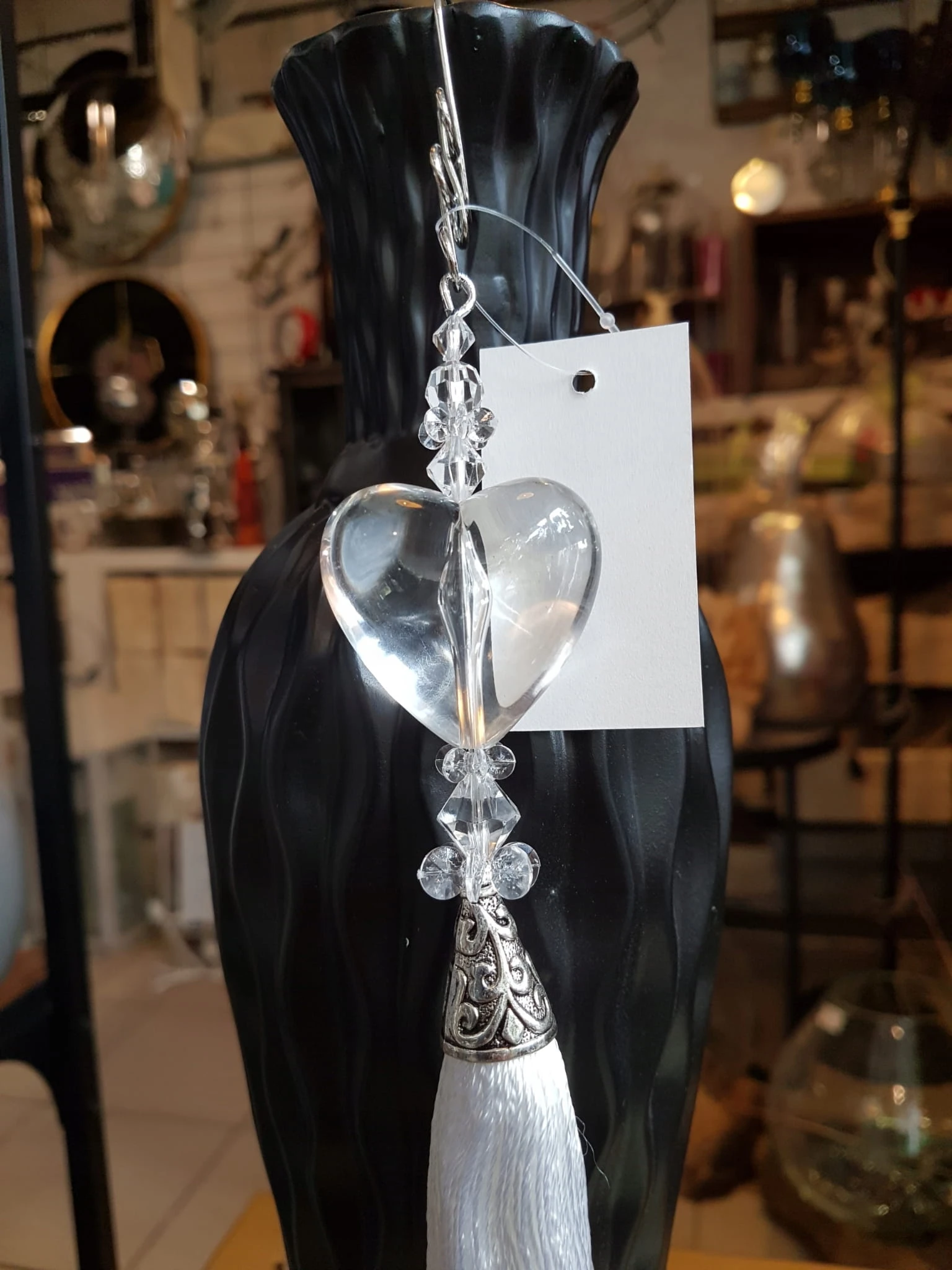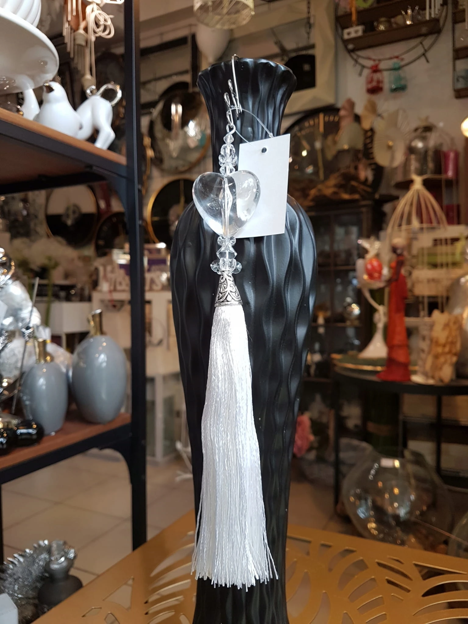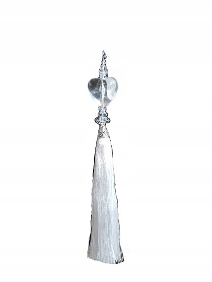 Dekoracyjna zawieszka z akrylowym sercem do zamocowania na elementach wyposażenia - abażurach, karniszach, zasłonach.
