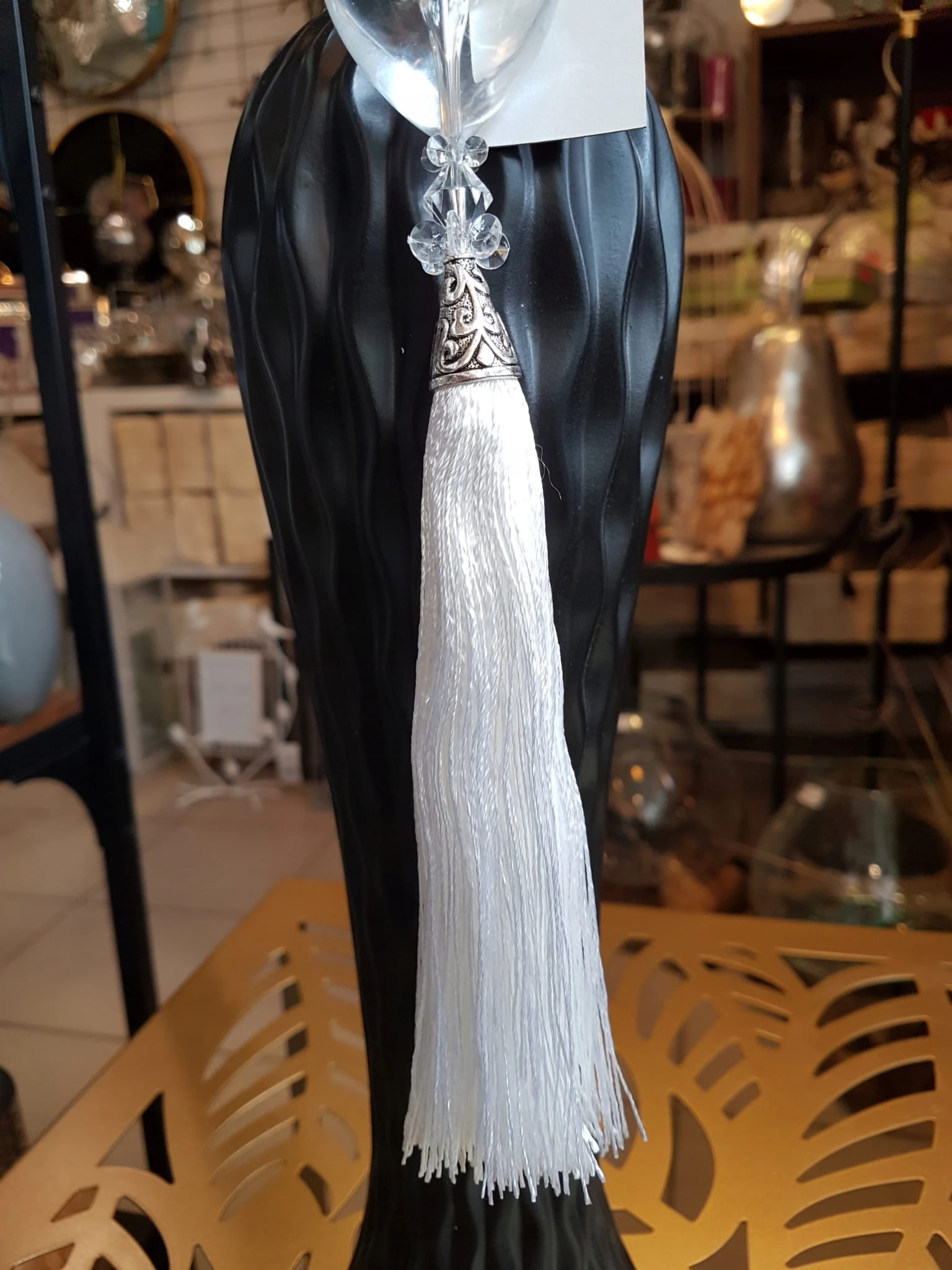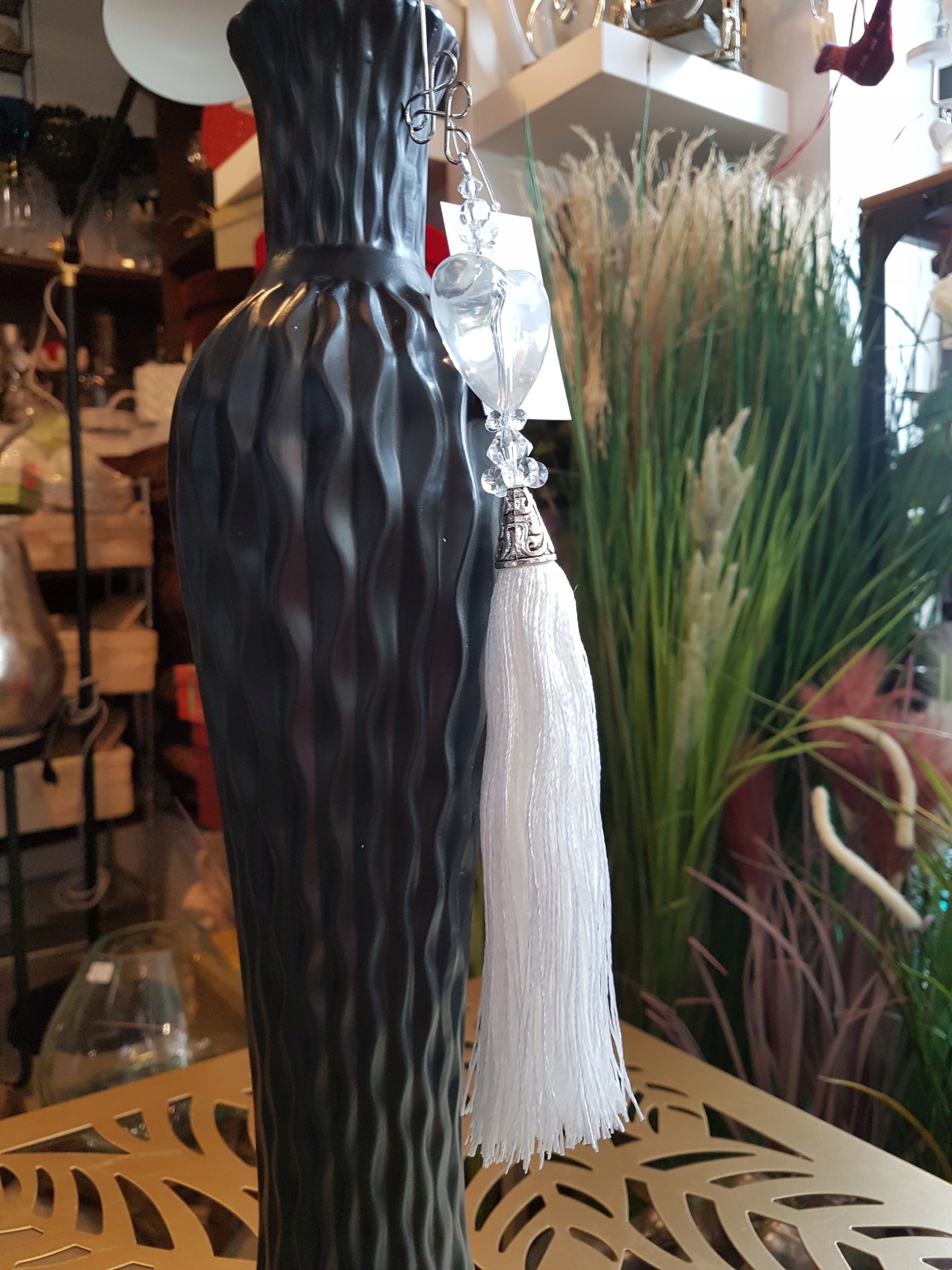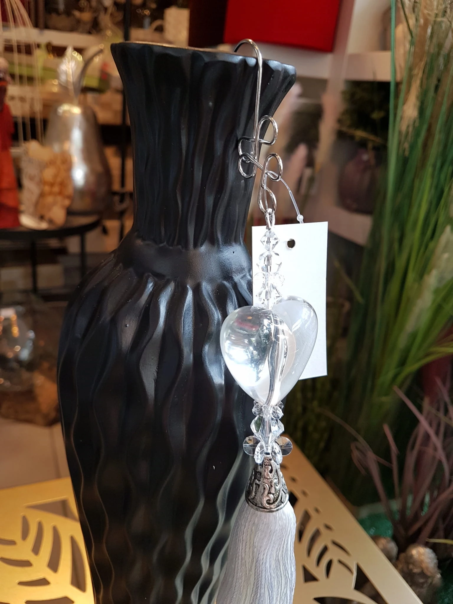 Dekoracyjna zawieszka z akrylowym sercem do zamocowania na elementach wyposażenia - abażurach, karniszach, zasłonach.