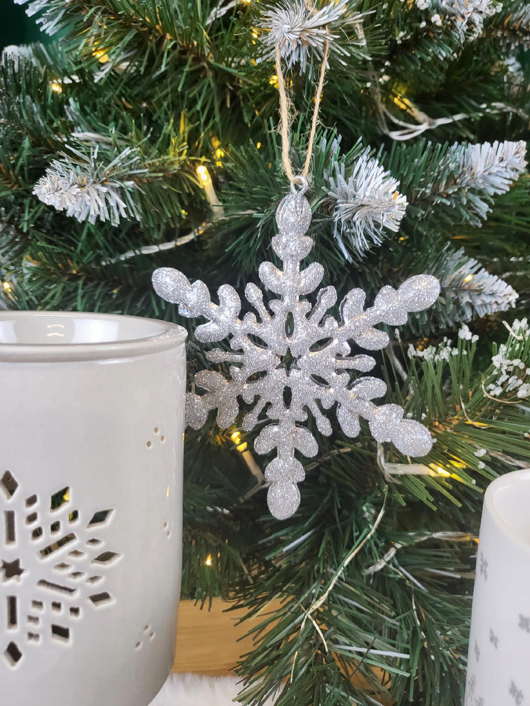 ZAWIESZKA AKRYLOWA ŚNIEŻYNKA GWIAZDKA SREBRNA