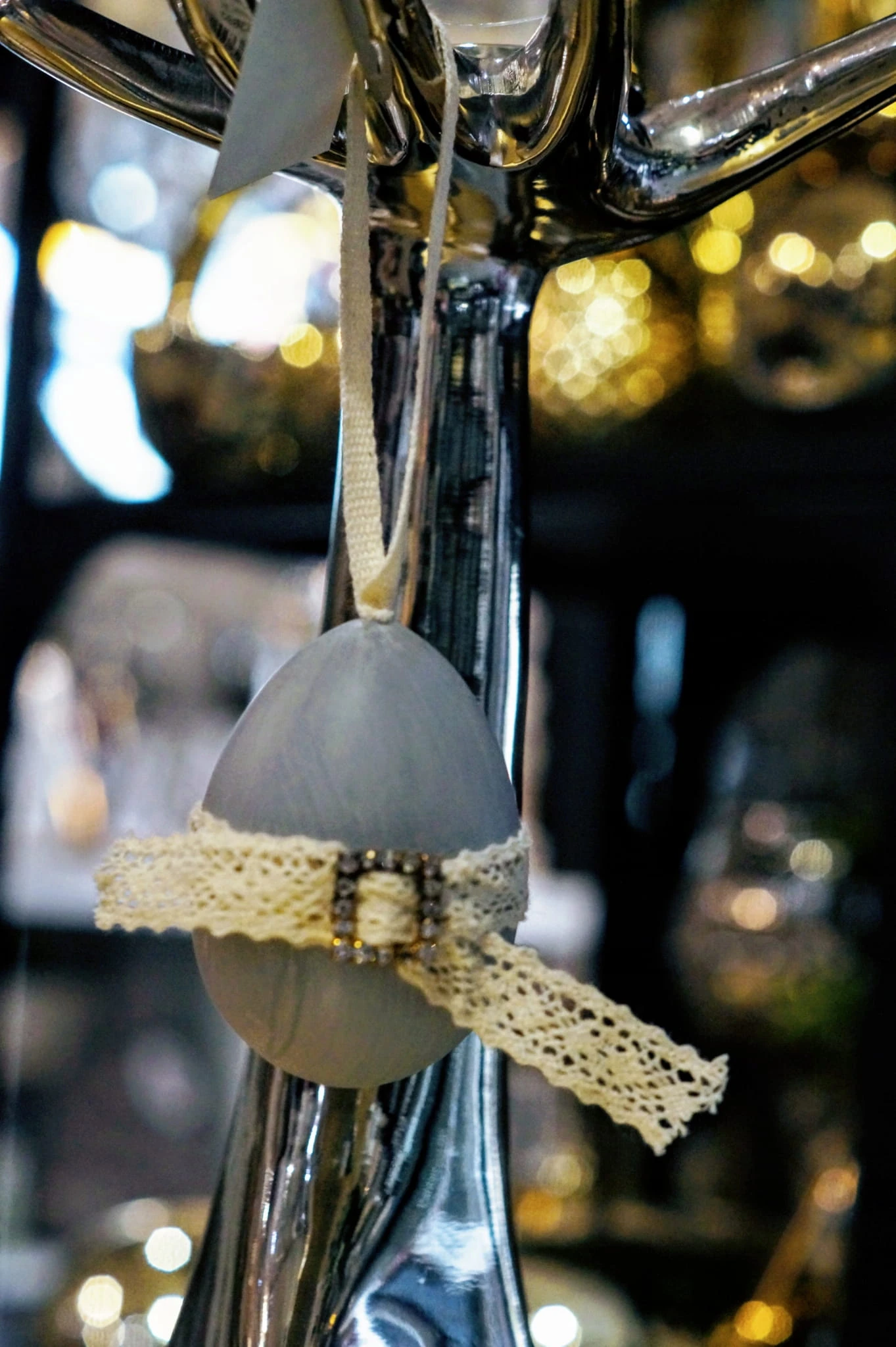 ZAWIESZKA JAJO WISZĄCE Z OZDOBĄ SZARE 5X5X7CM