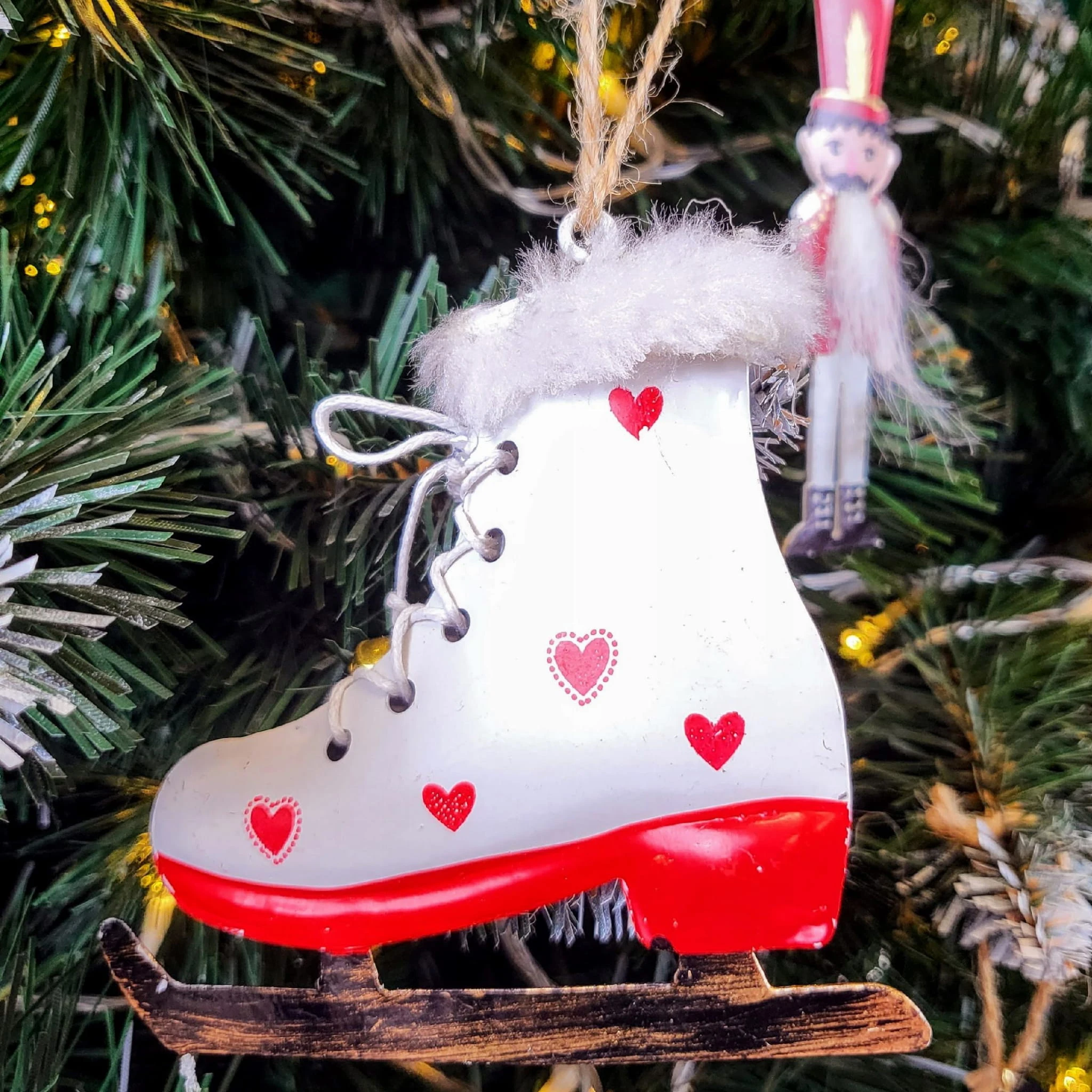 Metalowa zawieszka w kształcie łyżw, będzie perfekcyjnym akcentem jako ozdoba w oknie, na choince czy też w dowolnym miejscu.