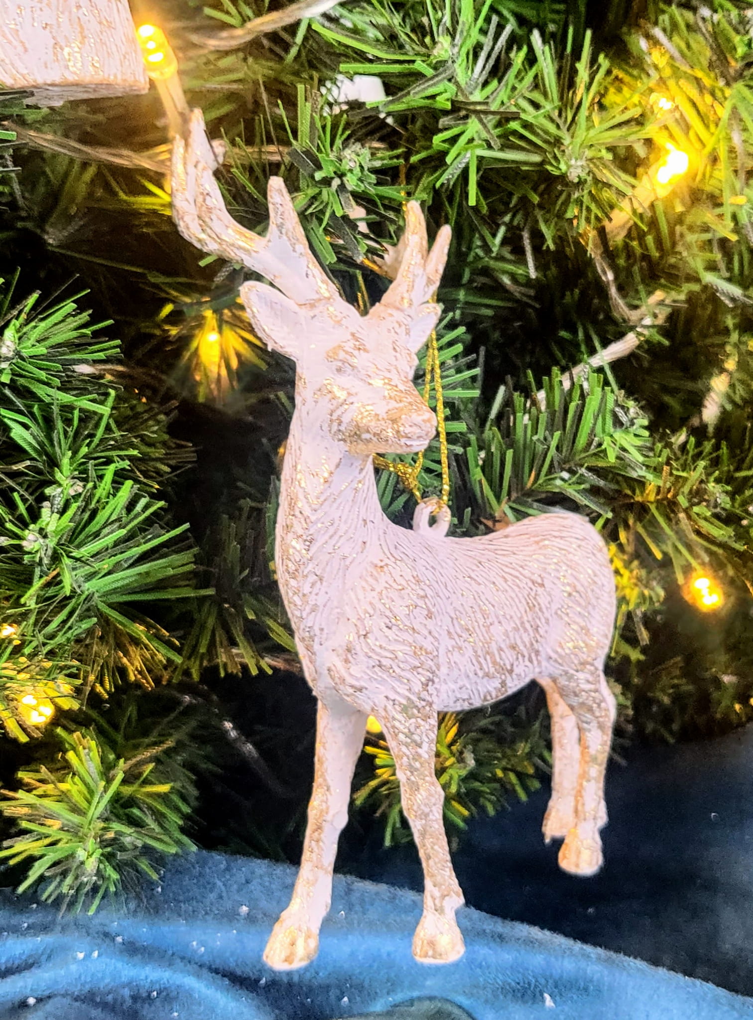 ZAWIESZKA RENIFER BIAŁO- ZŁOTY 9,5X6,8X13,8CM