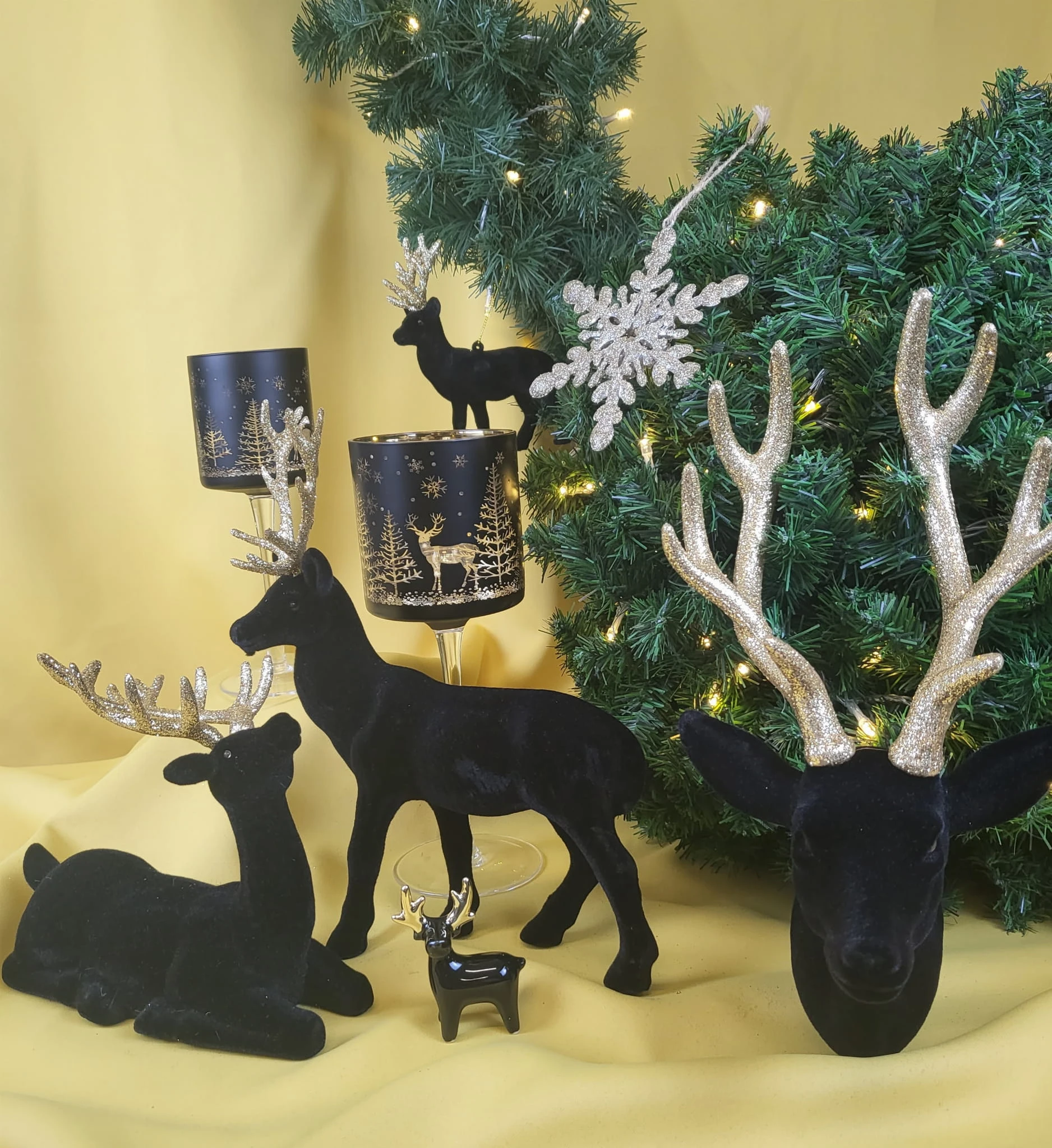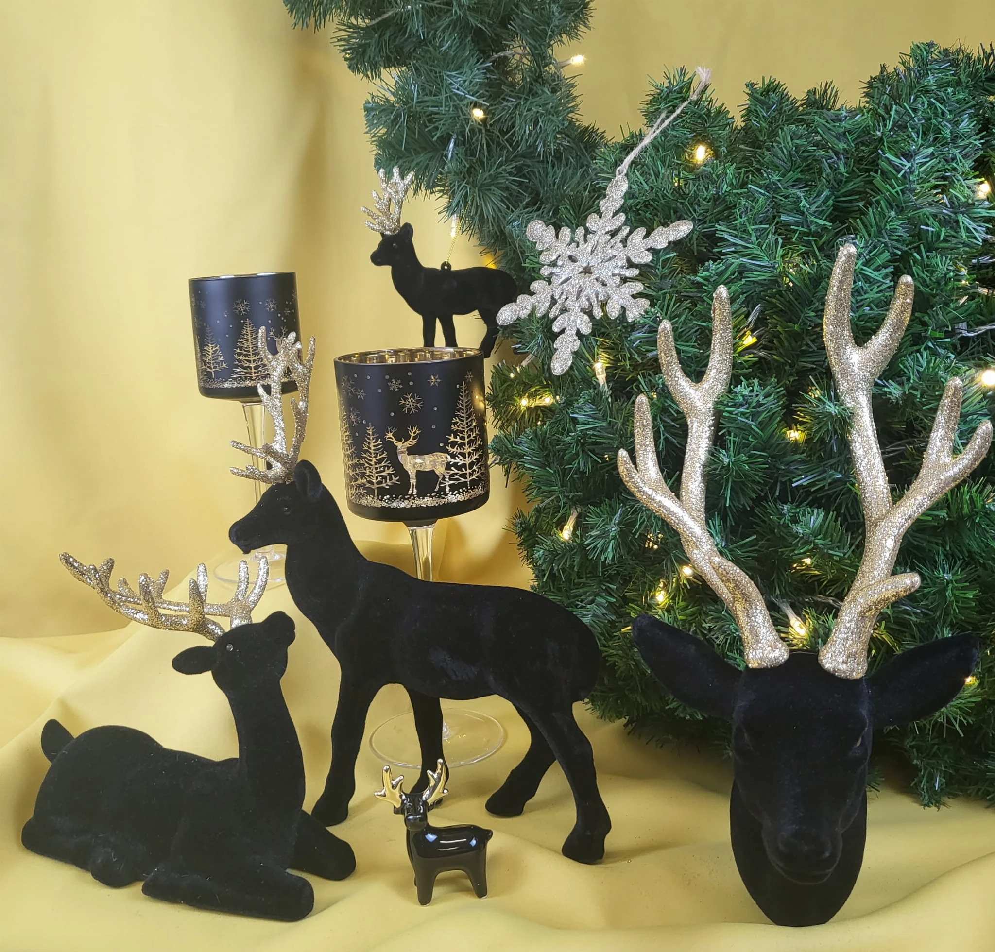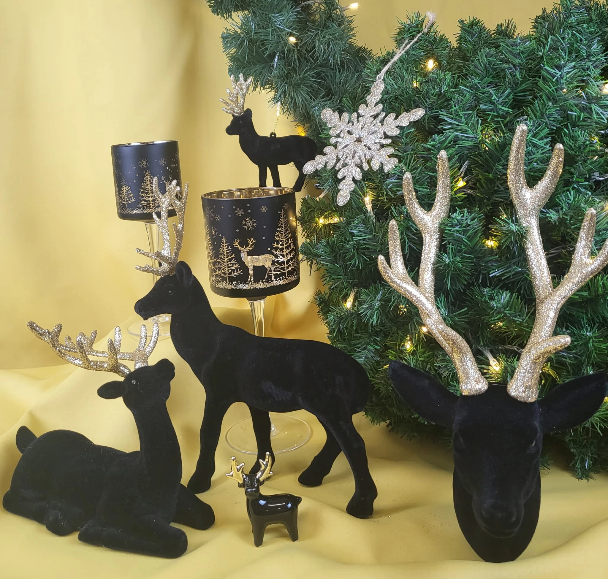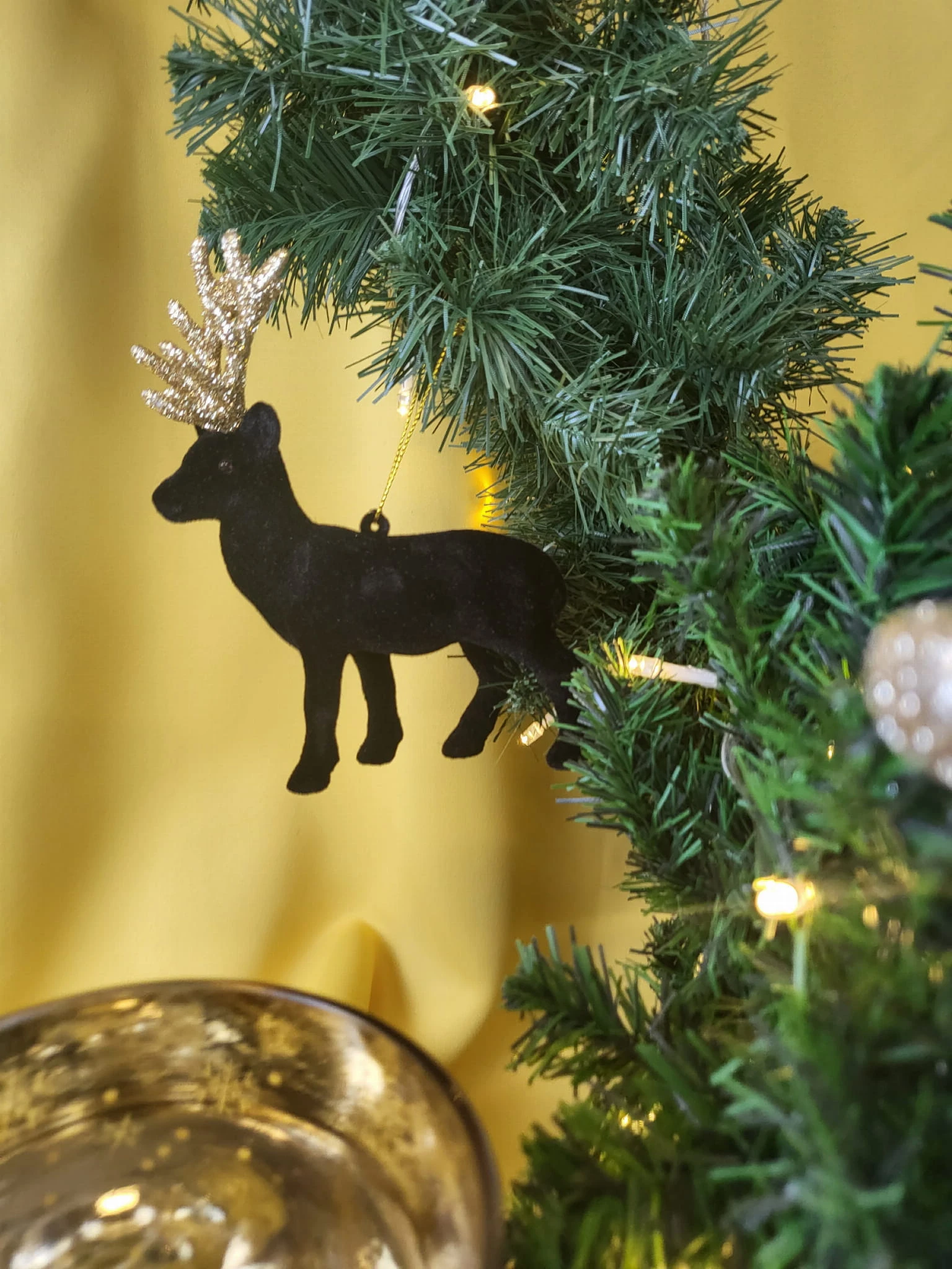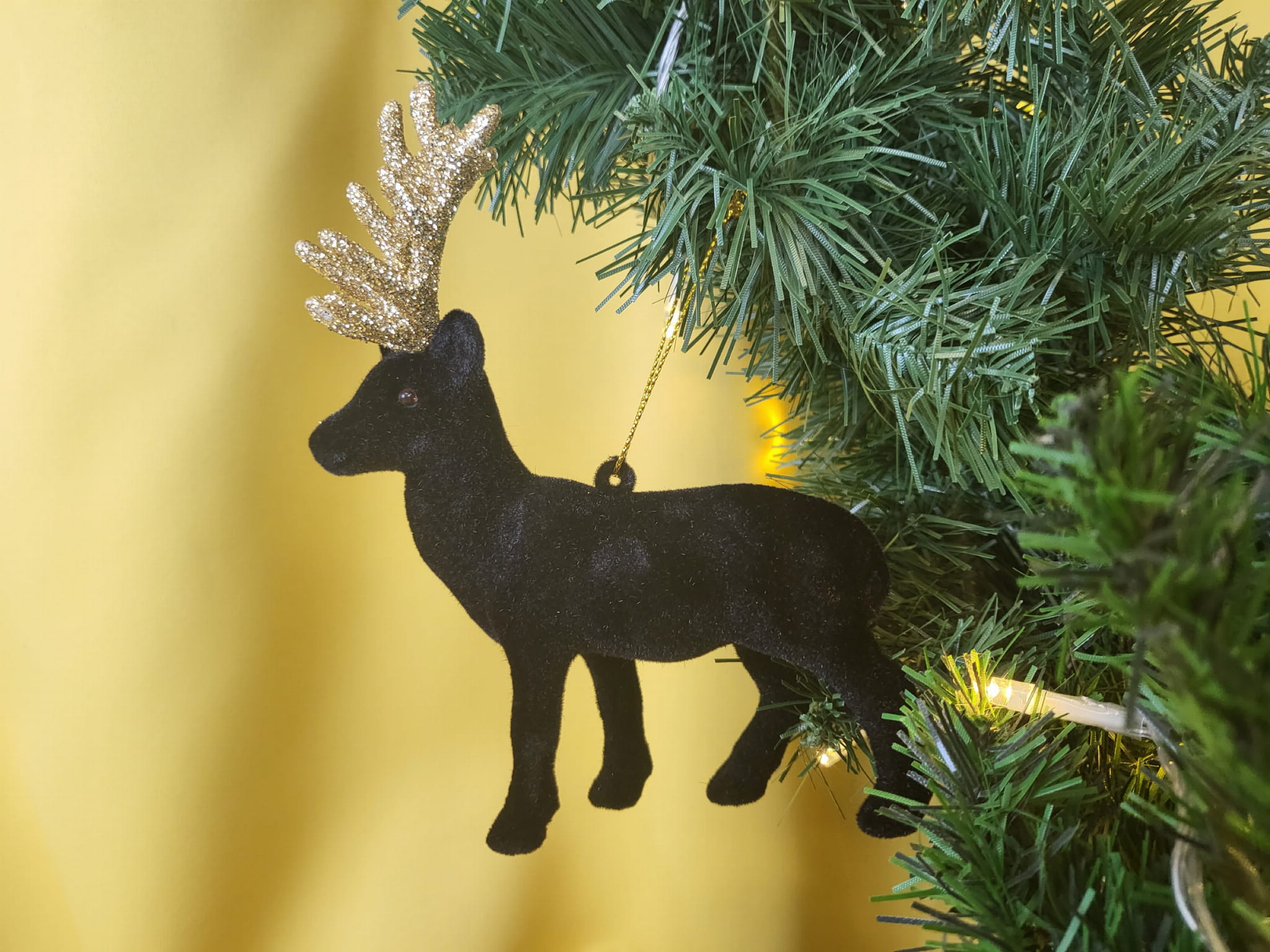 ZAWIESZKA RENIFER WELUROWY CZARNY ZE ZŁOTYM POROŻEM