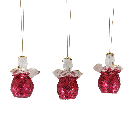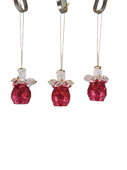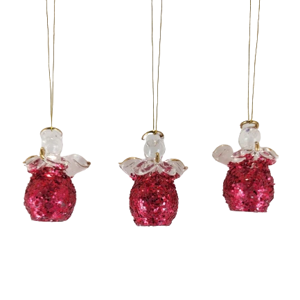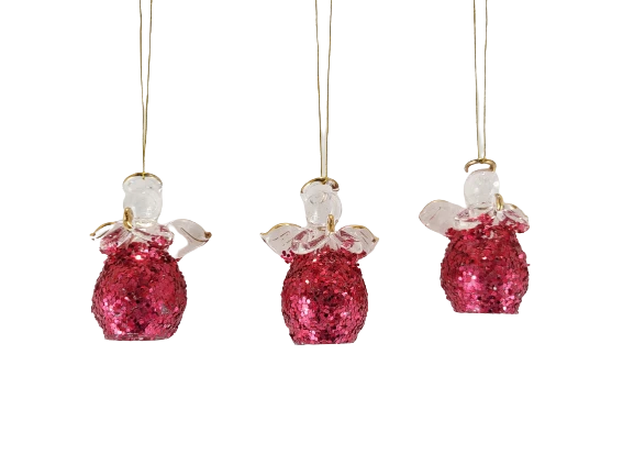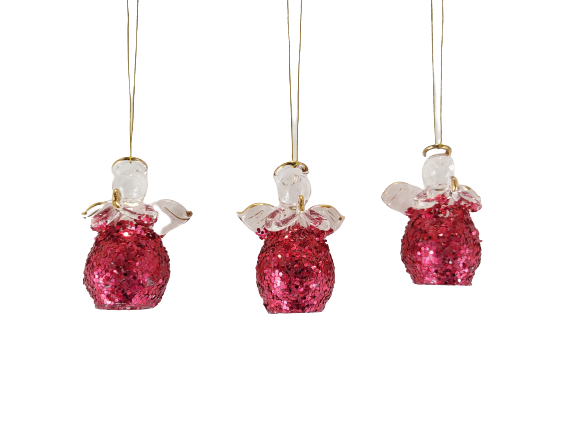 ZAWIESZKI KOMPLET 3 ANIOŁKÓW SZKLANYCH FUKSJA