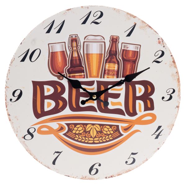 ZEGAR BIAŁY 34 CM Z NAPISEM BEER