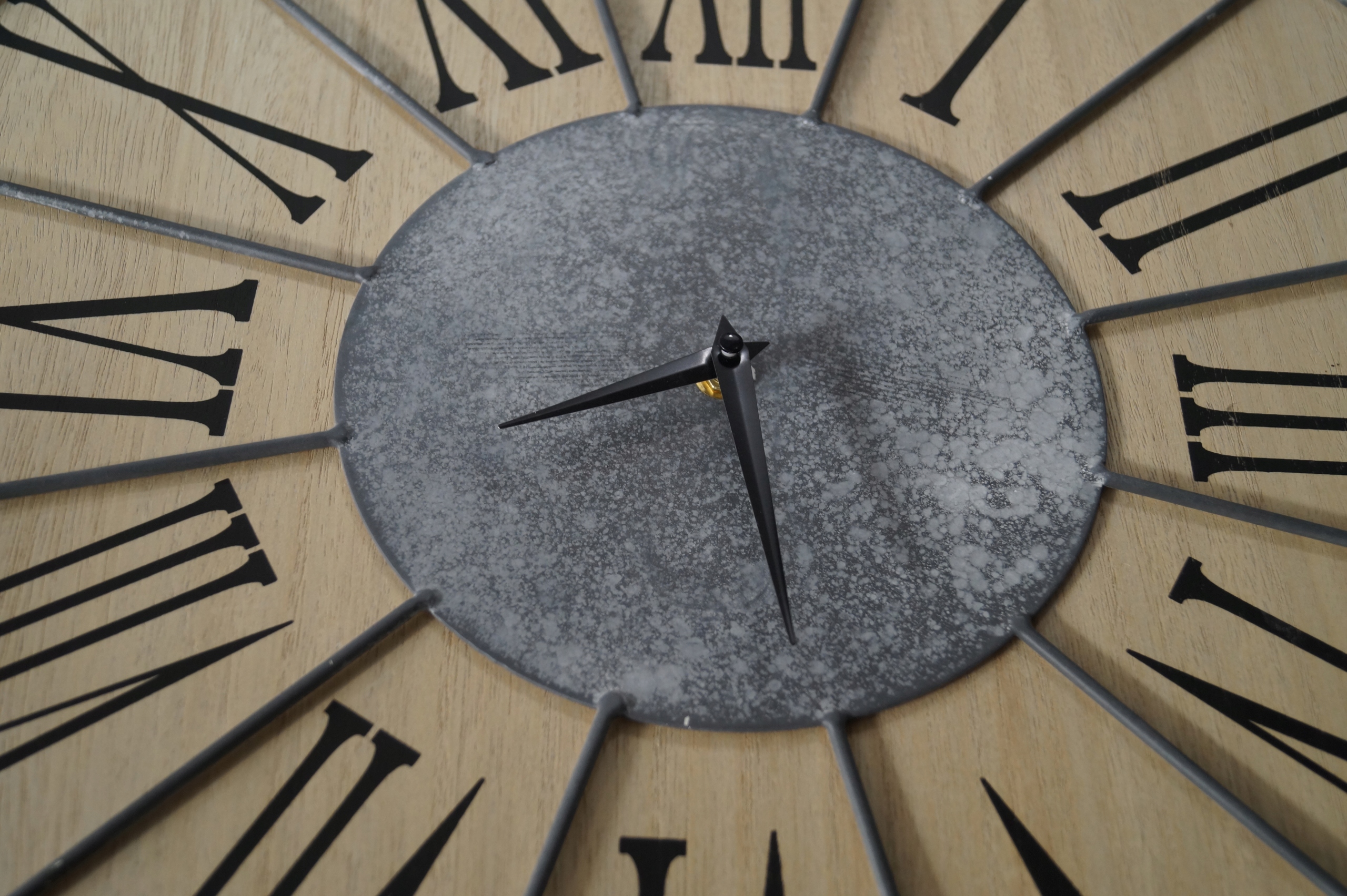 Zegar z płyty mdf oraz metalu.