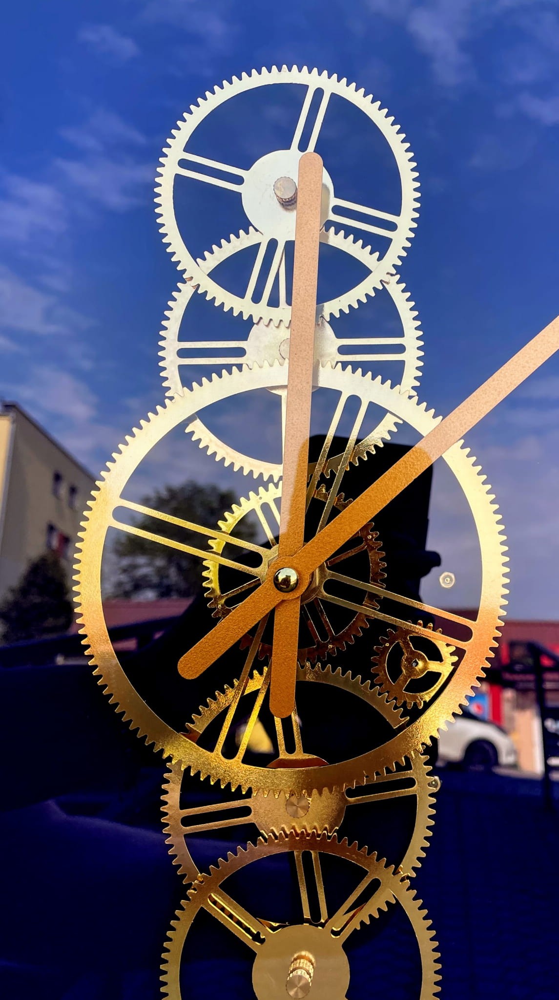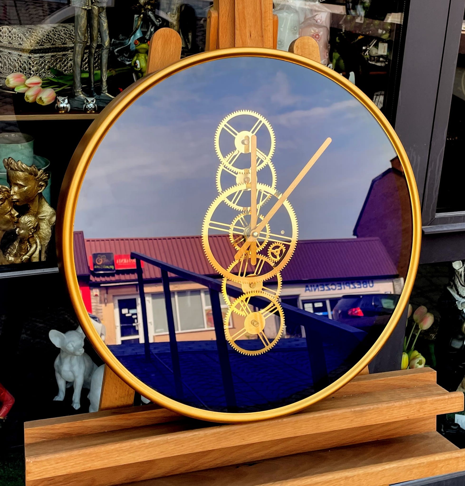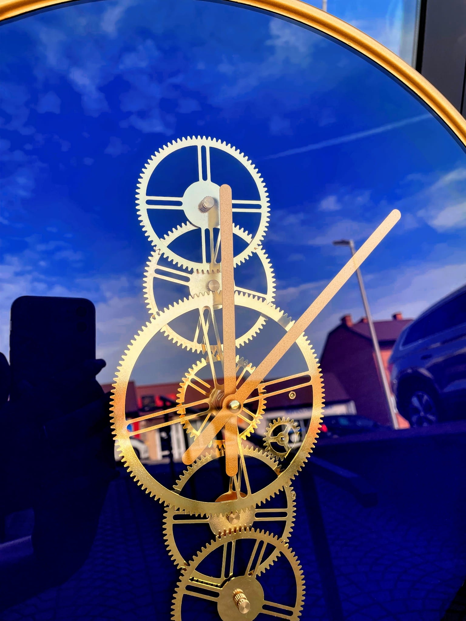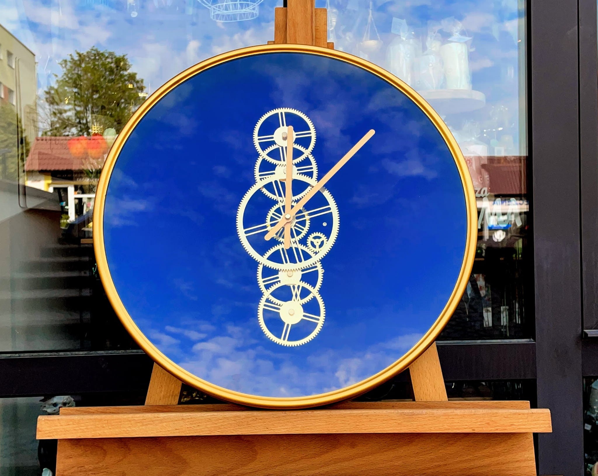 ZEGAR METAL 45,5CM GRANATOWY WIDOCZNY MECHANIZM