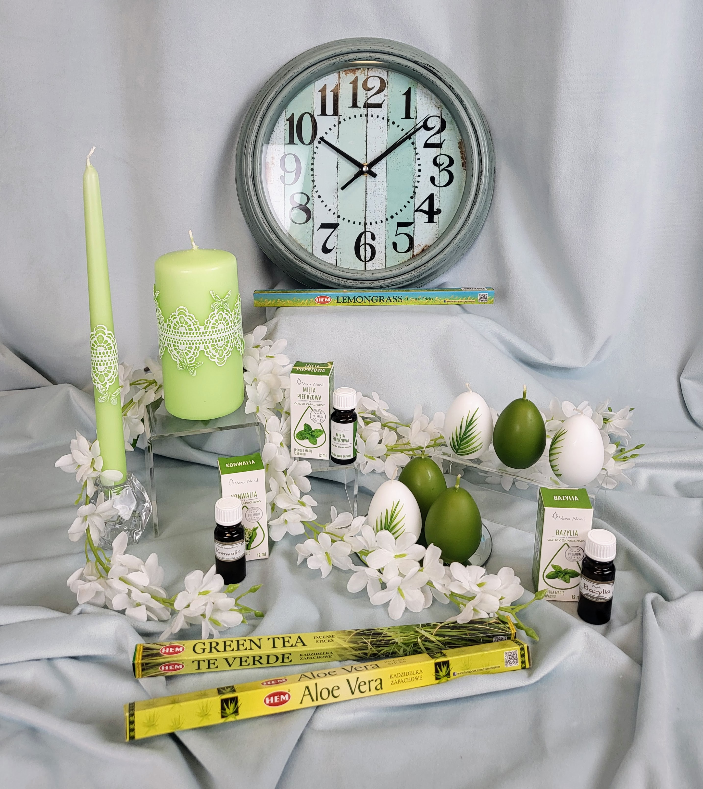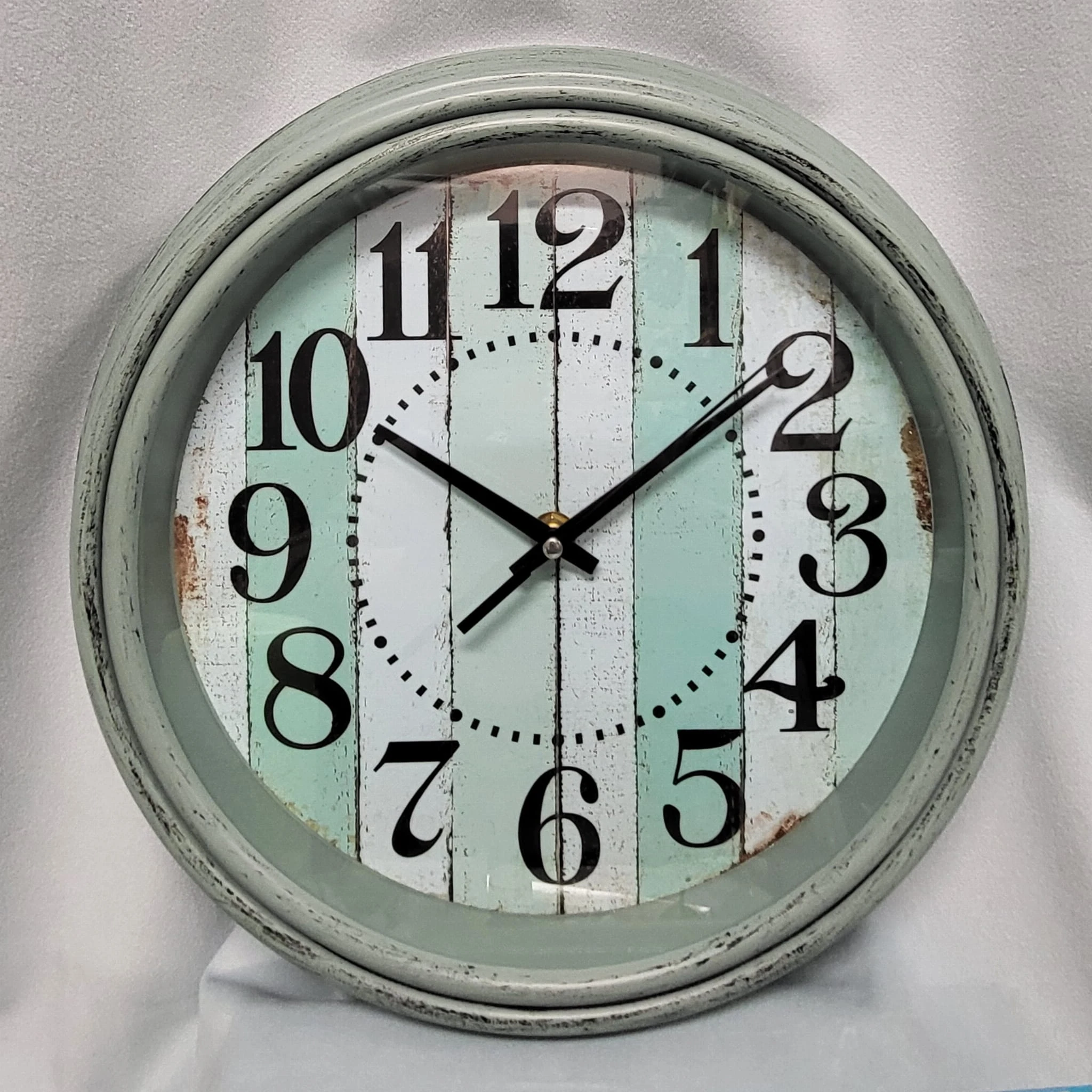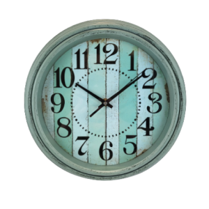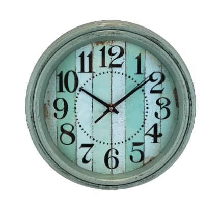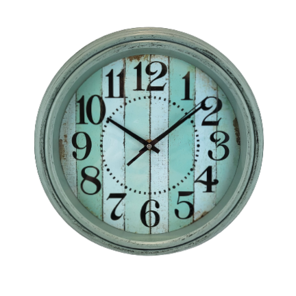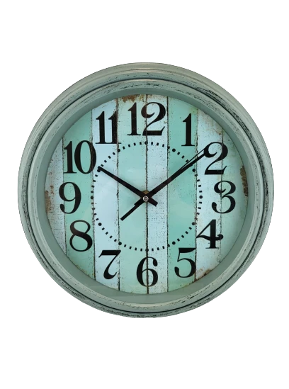 Zegar o tarczy imitującej deski w kolorze mięty, będzie zaś doskonale widoczny. Czarne cyfry arabskie odcinające się od tła, ułatwią odczytanie godziny.