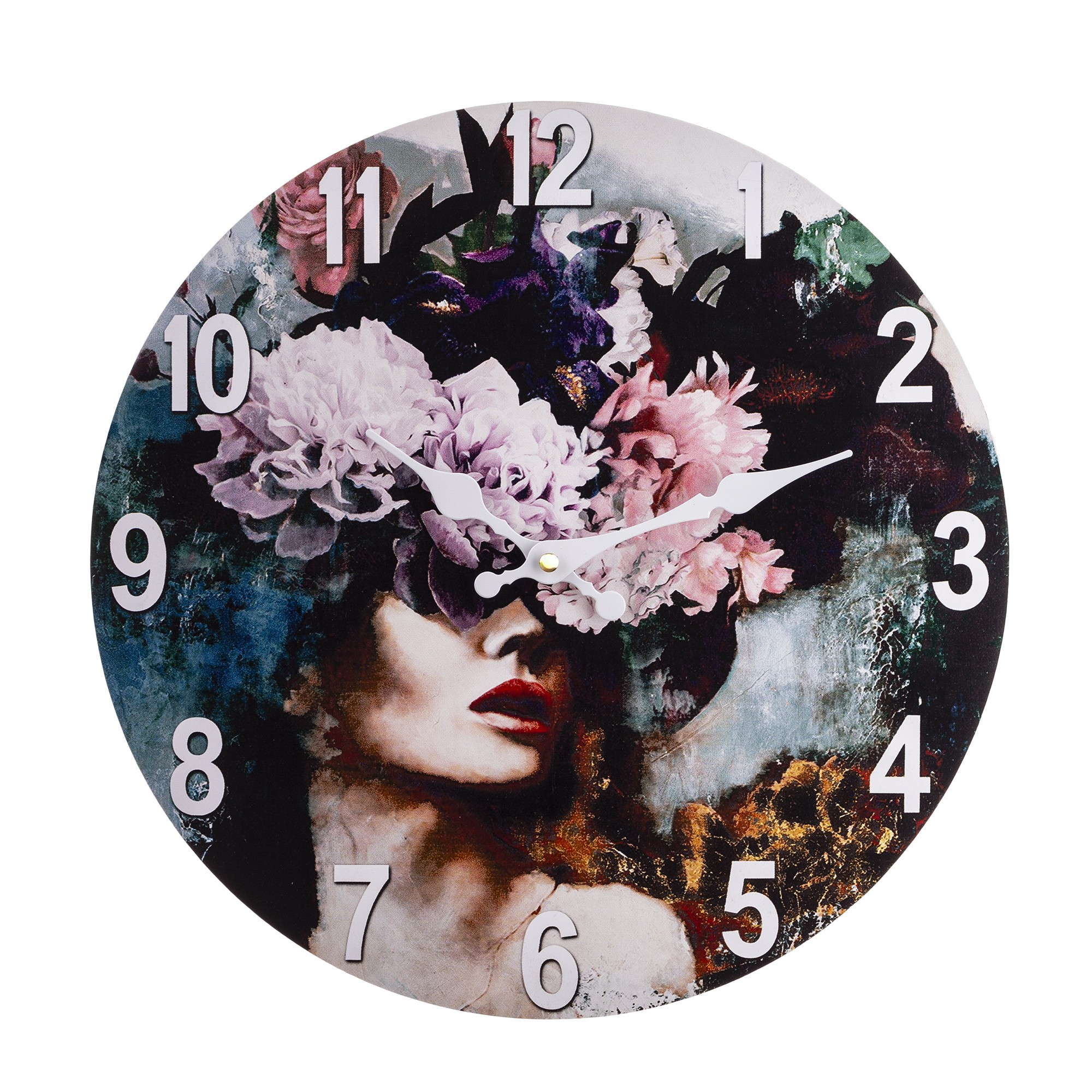 ZEGAR ŚCIENNY KOBIETA Z KWIATAMI 34CM NA BATERIE