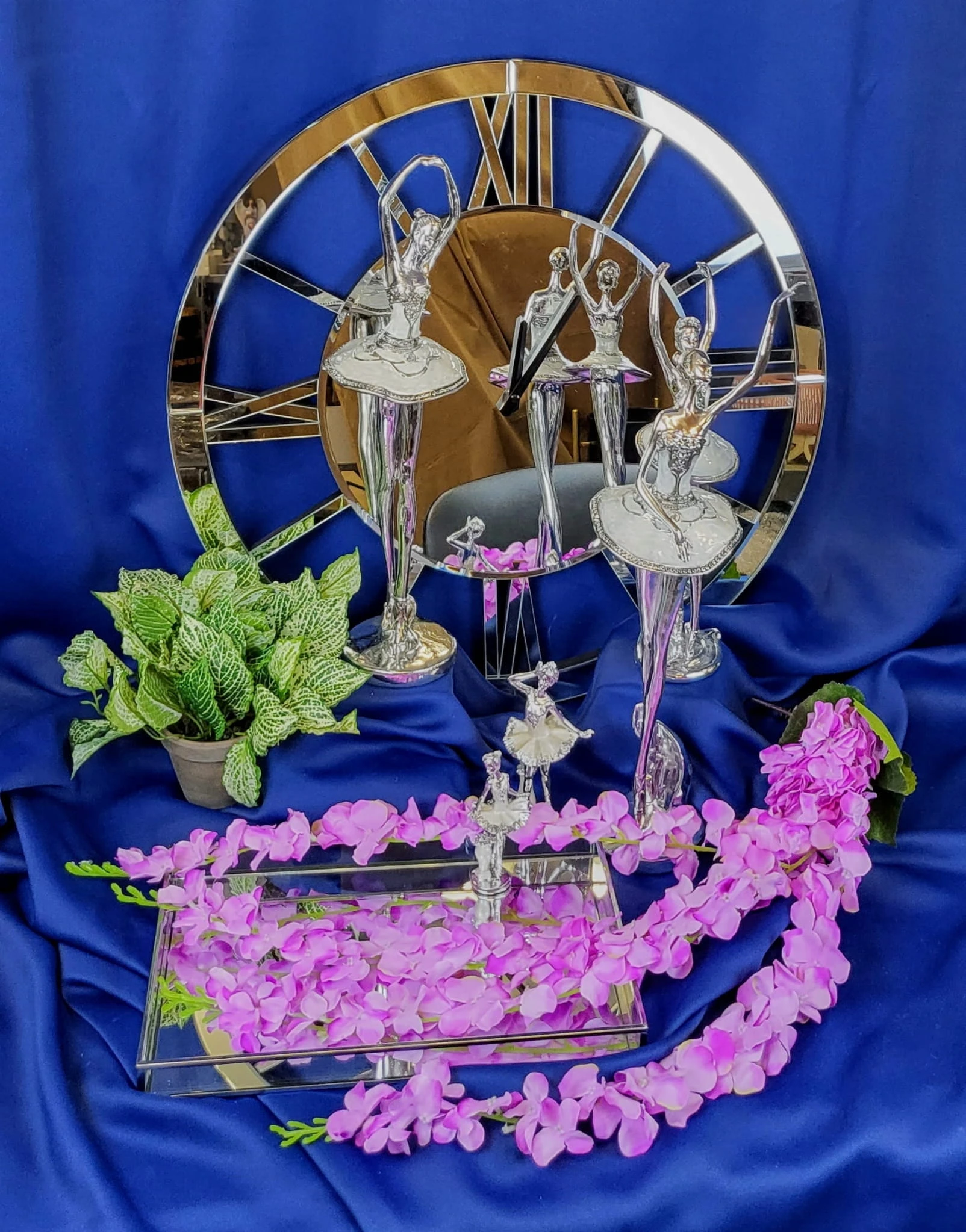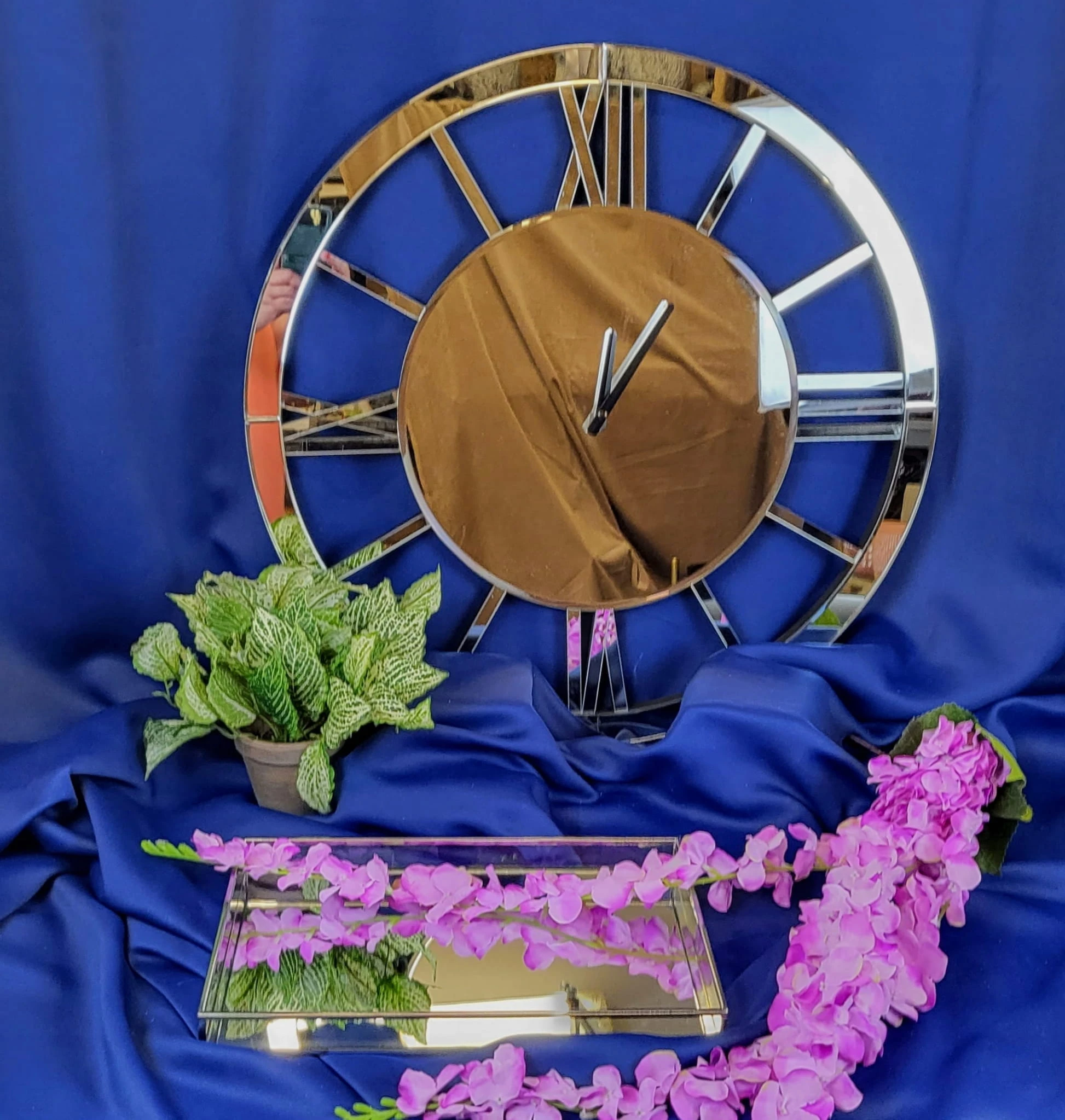 Zegar został zaprojektowany w stylu glamour. Jego minimalistyczny styl sprawia, że doskonale wpasuje się w każdy wystrój. Lustrzany klasyczny zegar będzie zaś doskonale widoczny w pomieszczeniu.