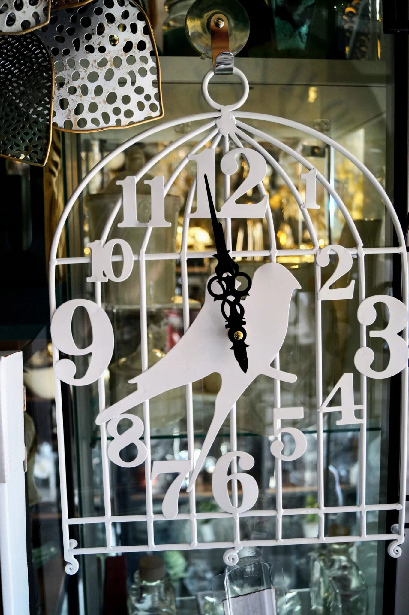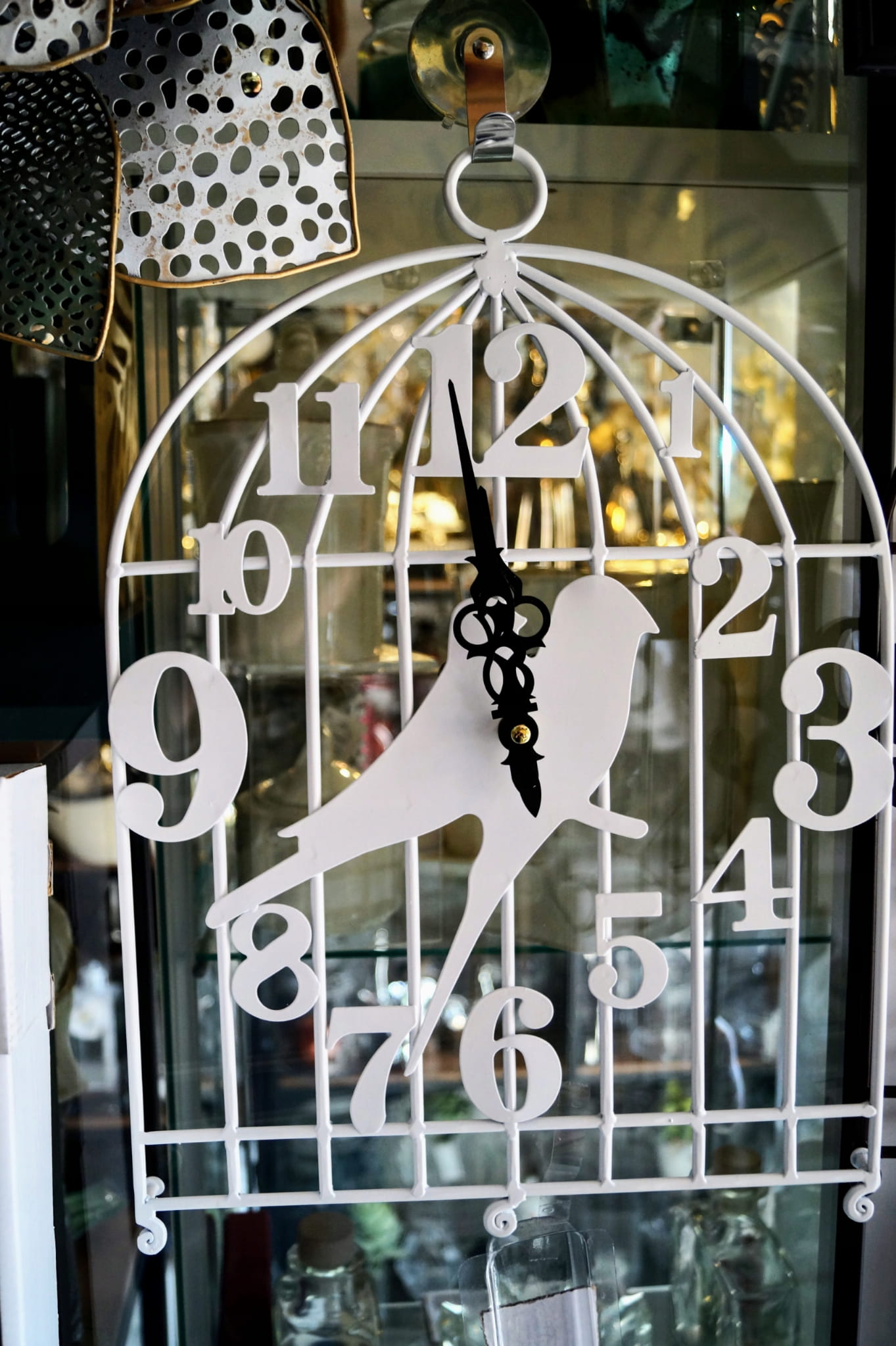 ZEGAR ŚCIENNY METALOWY KLATKA BIAŁY