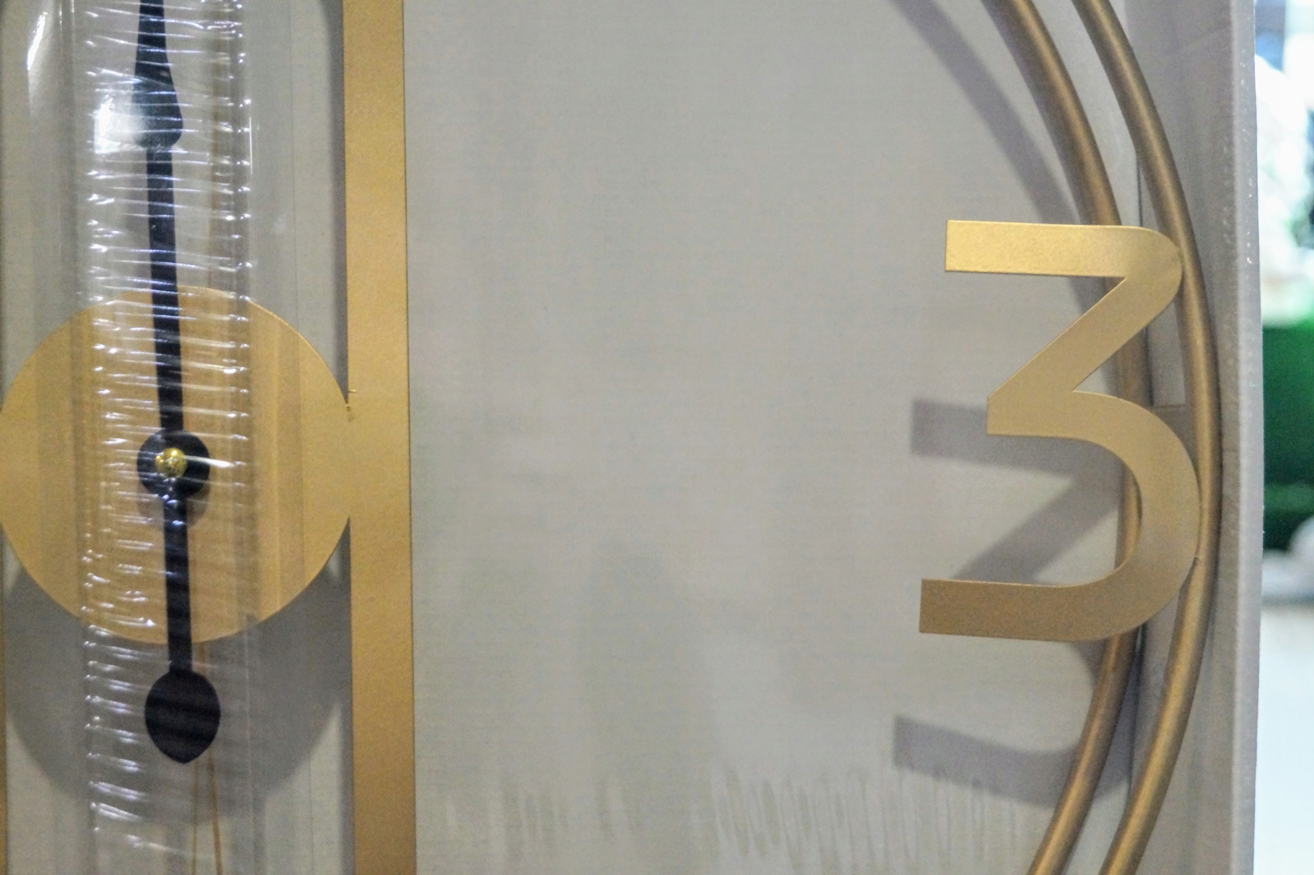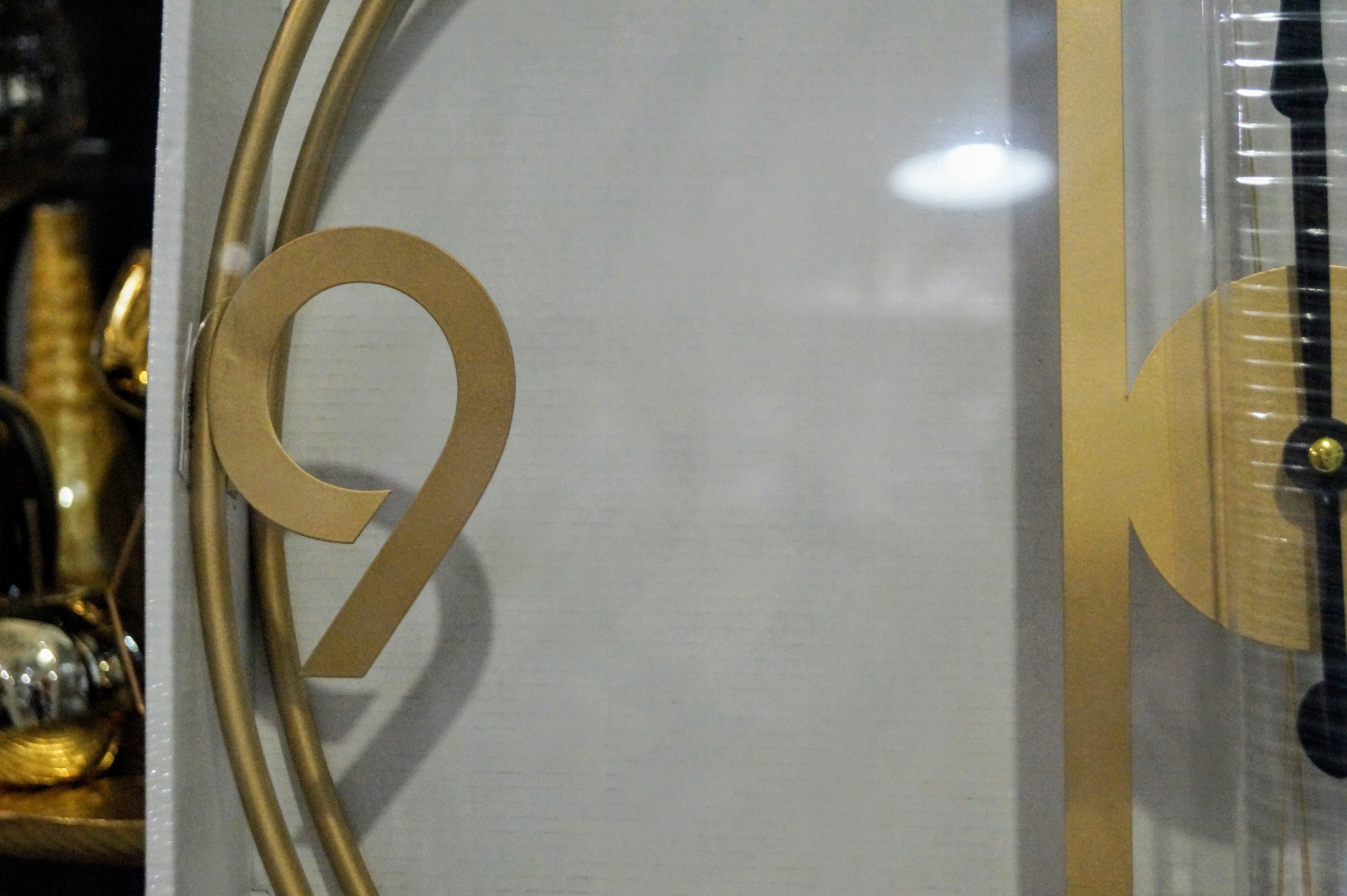 Zegar ścienny w kolorze złotym. Cechuje go oryginalność i uniwersalność, ponieważ doskonale wpasuje się we wnętrza praktycznie w każdym stylu. Idealny dla wielbicieli stylu Loft, Vintage czy Retro. Cała obudowa wykonana jest z solidnego metalu, dzięki czemu zegar jest trwały i odporny na uszkodzenia. Nada on niepowtarzalny klimat w każdym pomieszczeniu. Zegar ma mechanizm cichy, dzięki czemu można zastosować go w sypialni czy salonie. Może stać się również elementem wystroju restauracji czy hotelu, gdzie dopełni wyjątkową atmosferę. Zegar jest zasilany na baterie AA.