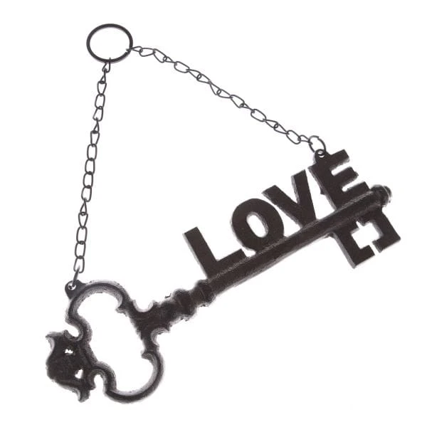 Żeliwny klucz do zawieszenia z napisem "love".