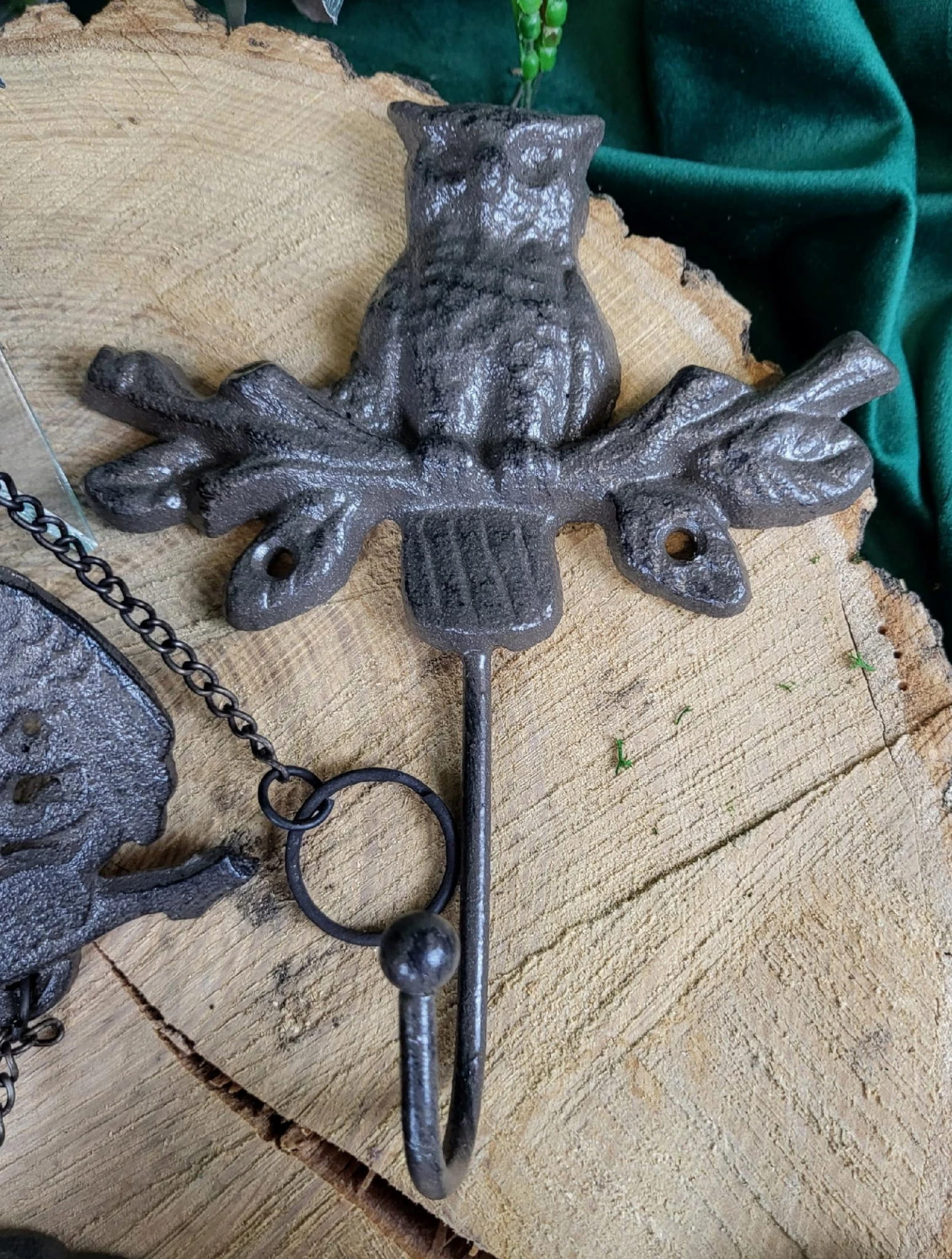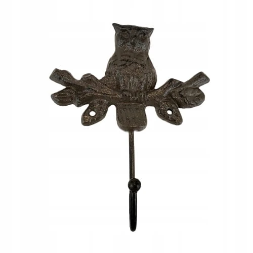 Efektowny, żeliwny haczyk w kształcie sowy.