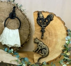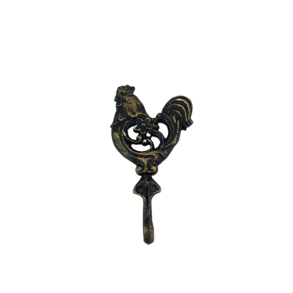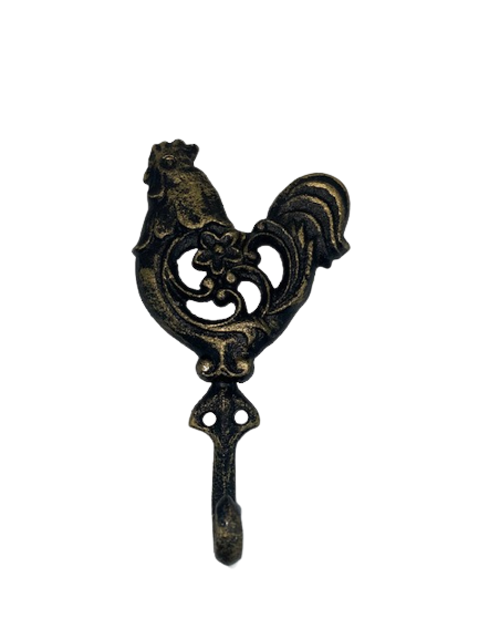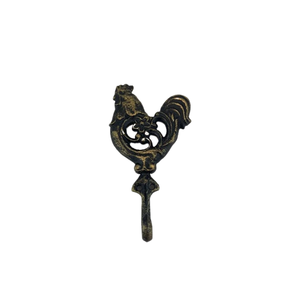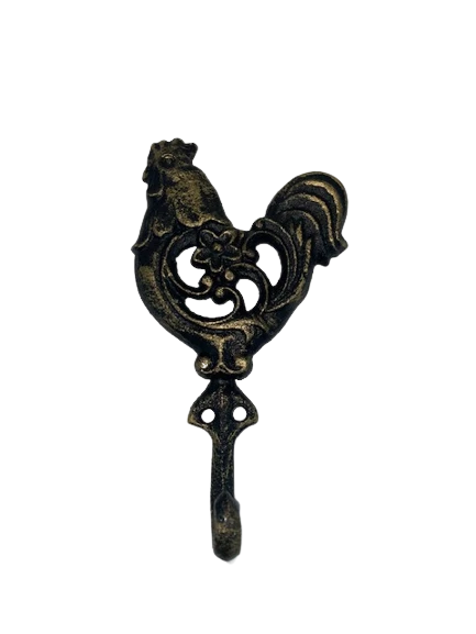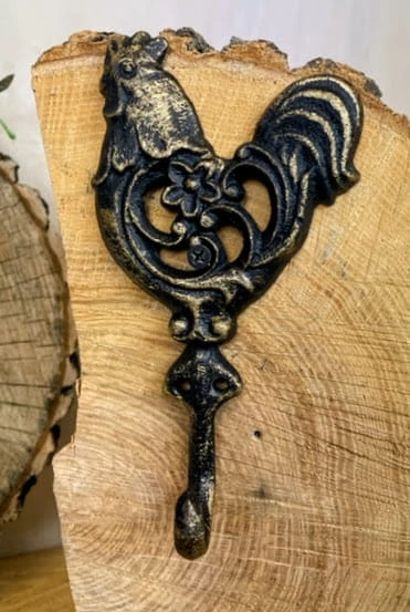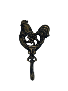 Efektowny, żeliwny haczyk z motywem koguta.