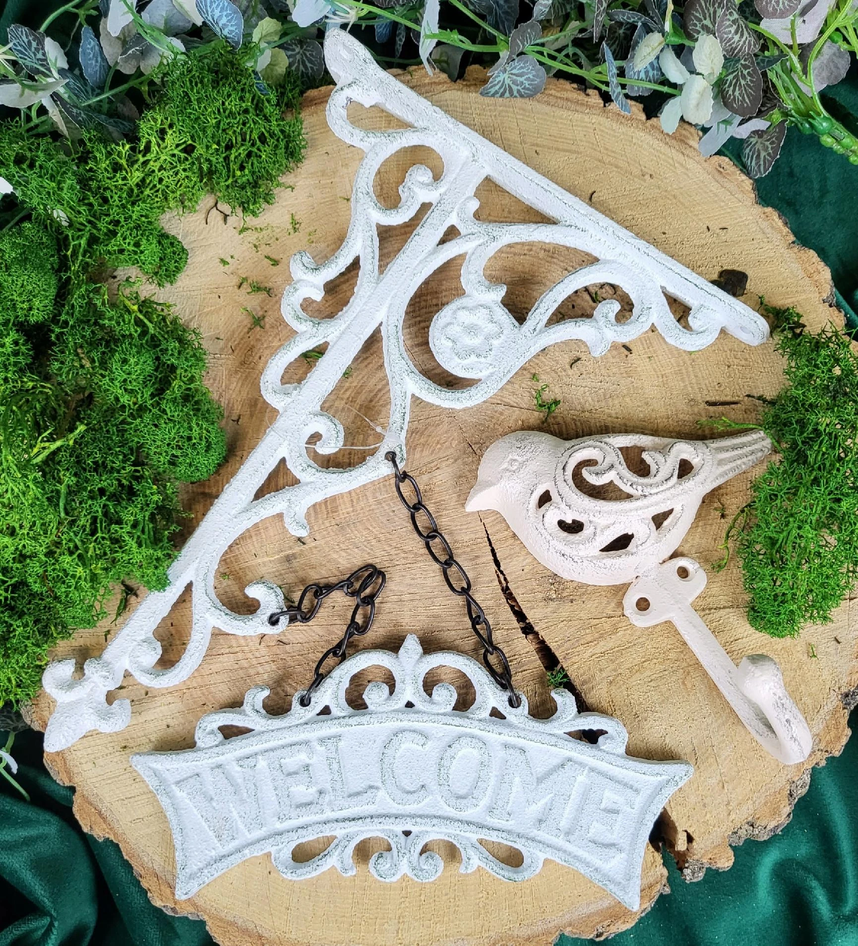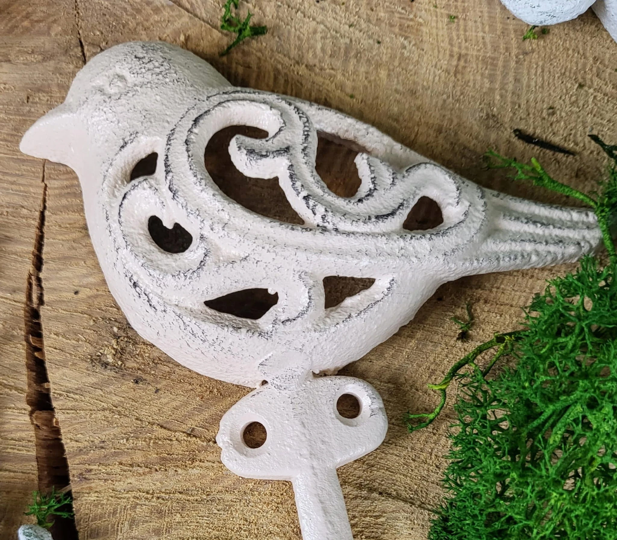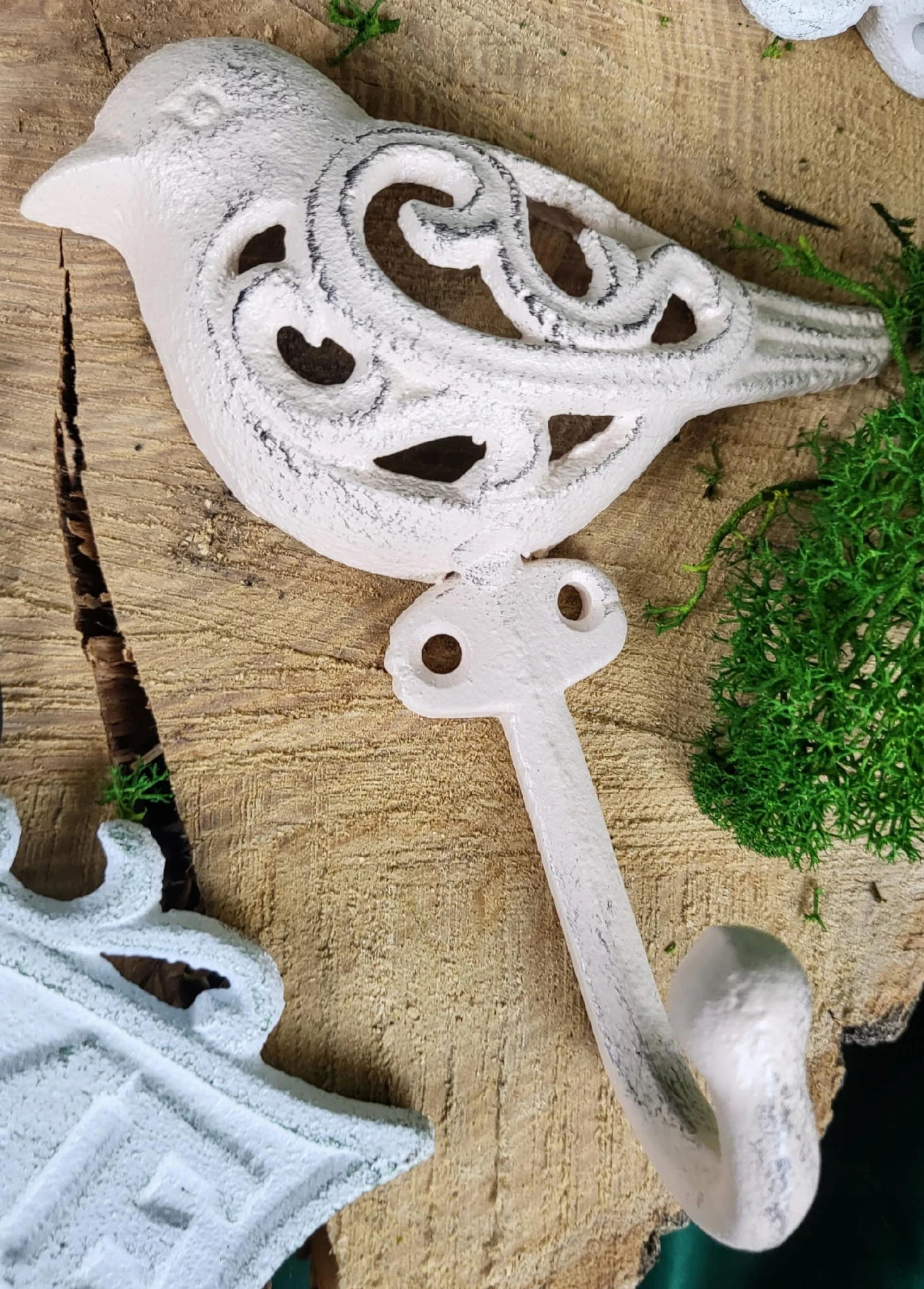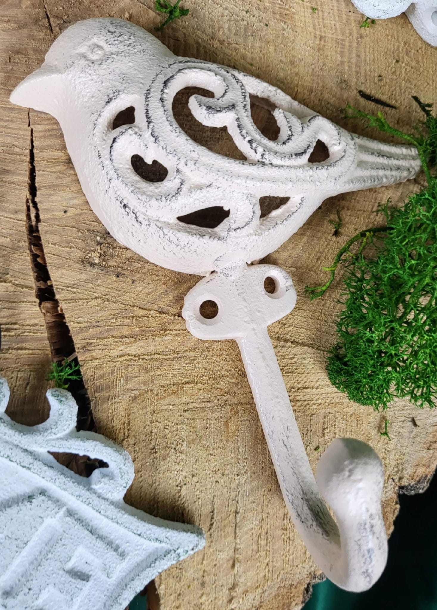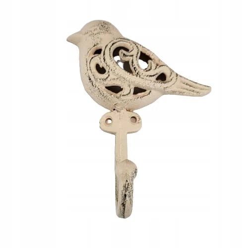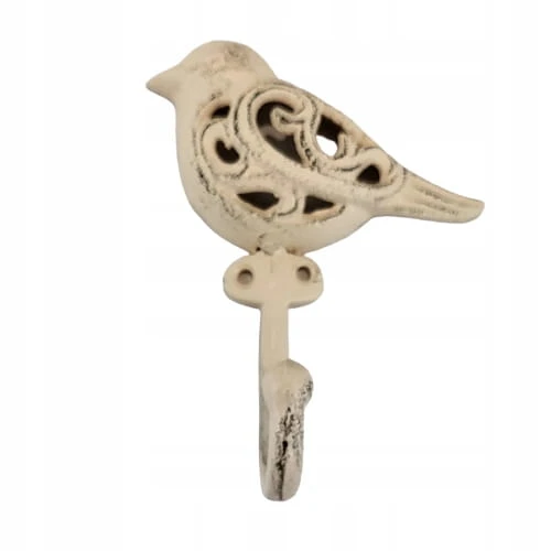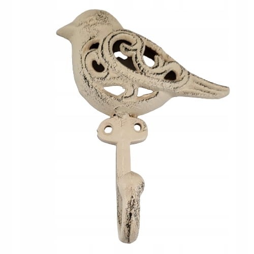 Efektowny, żeliwny haczyk w kształcie ptaszka.