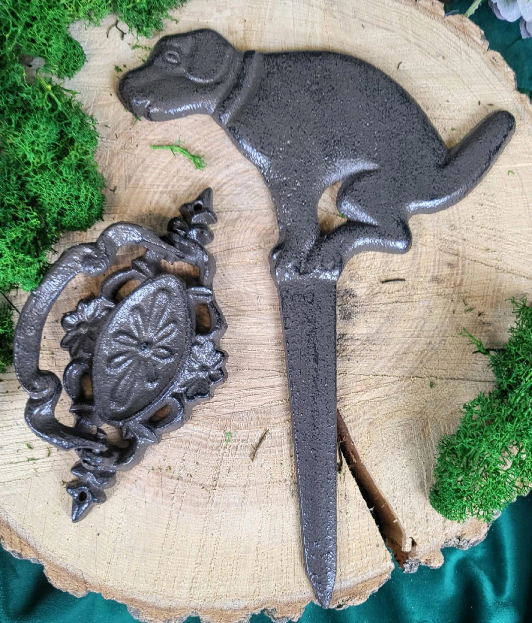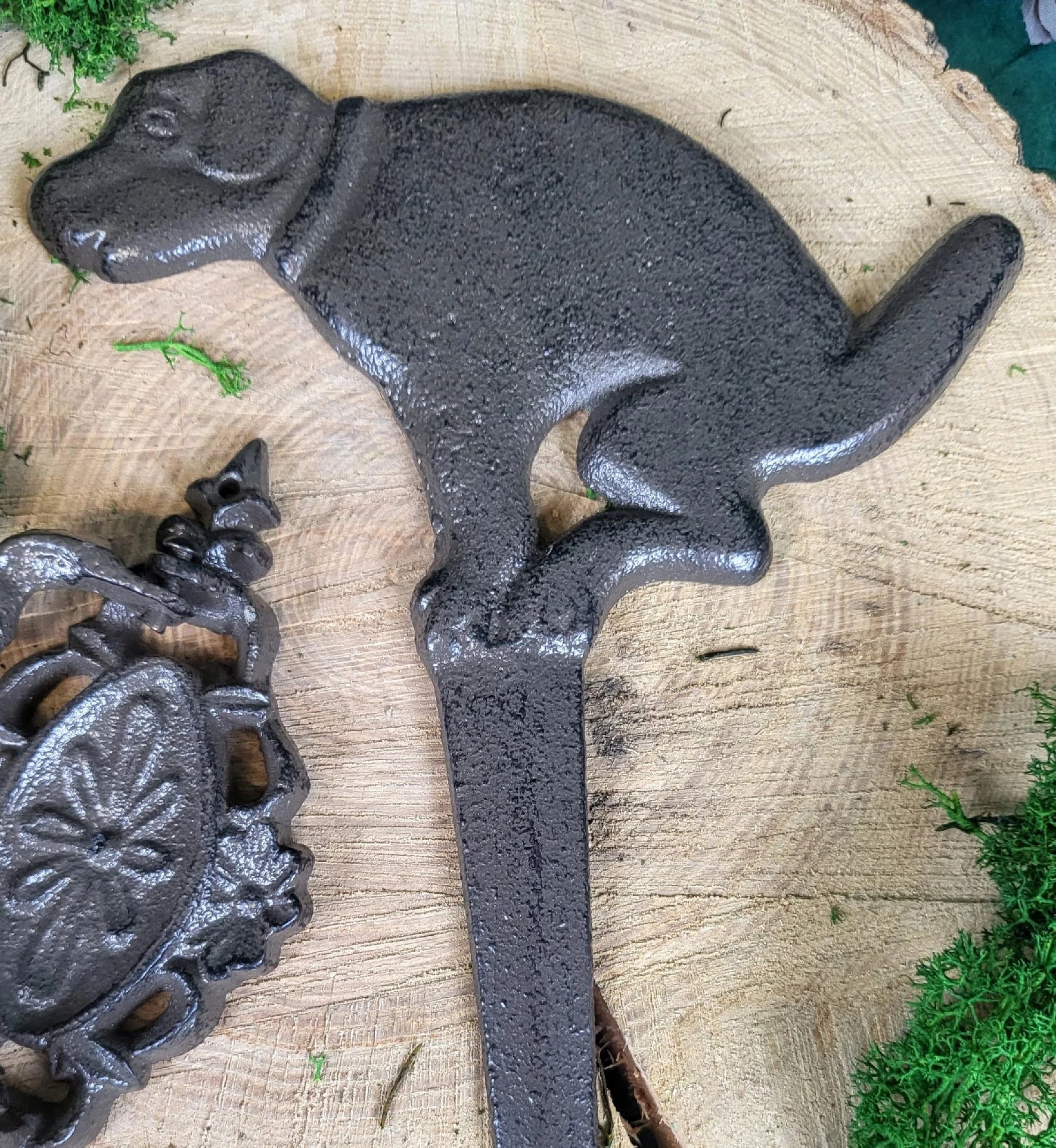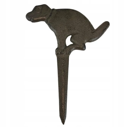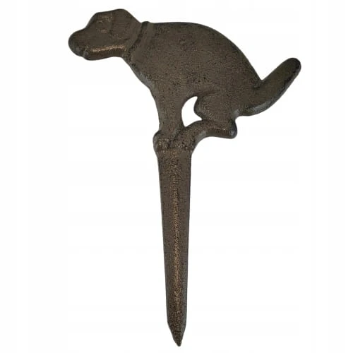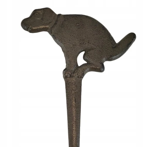 Żeliwny kołek ogrodowy z motywem zabawnego psa to śmieszna i ciekawa dekoracja, która urozmaici wygląd przydomowego ogrodu.