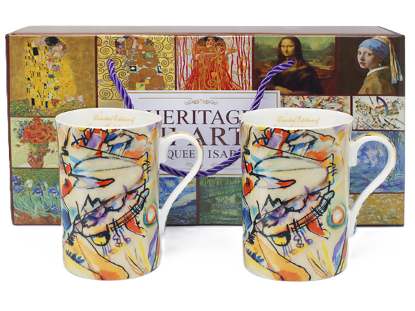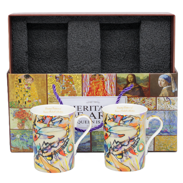 Odkryj siłę koloru i formy z zestawem kubków z serii Heritage of Arts. Prezentowany model charakteryzuje się unikalną kompozycją geometryczną, bezpośrednio nawiązującą do rewolucyjnego stylu Kandinsky'ego. Zestawienie intensywnych barw z czarnymi, wyrazistymi liniami na tle białej porcelany tworzy nowoczesną dekorację, która nada każdemu spotkaniu przy kawie artystycznego sznytu.