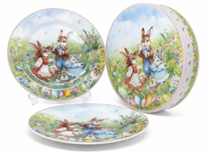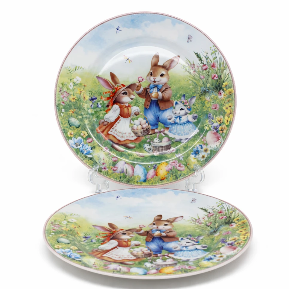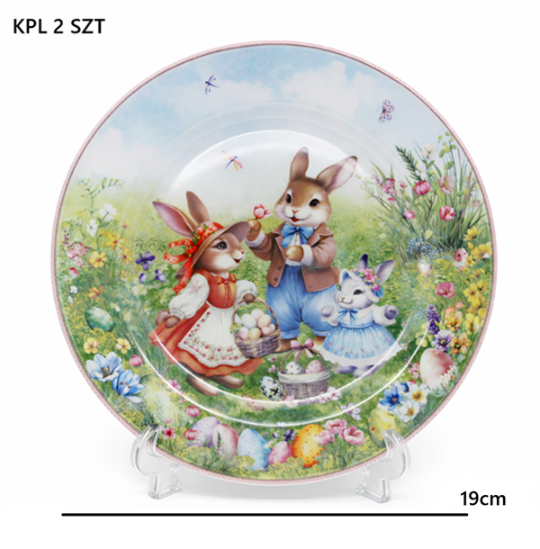 ZESTAW 2 TALERZY DESEROWYCH WIELKANOC ZAJĄCZKI 19CM