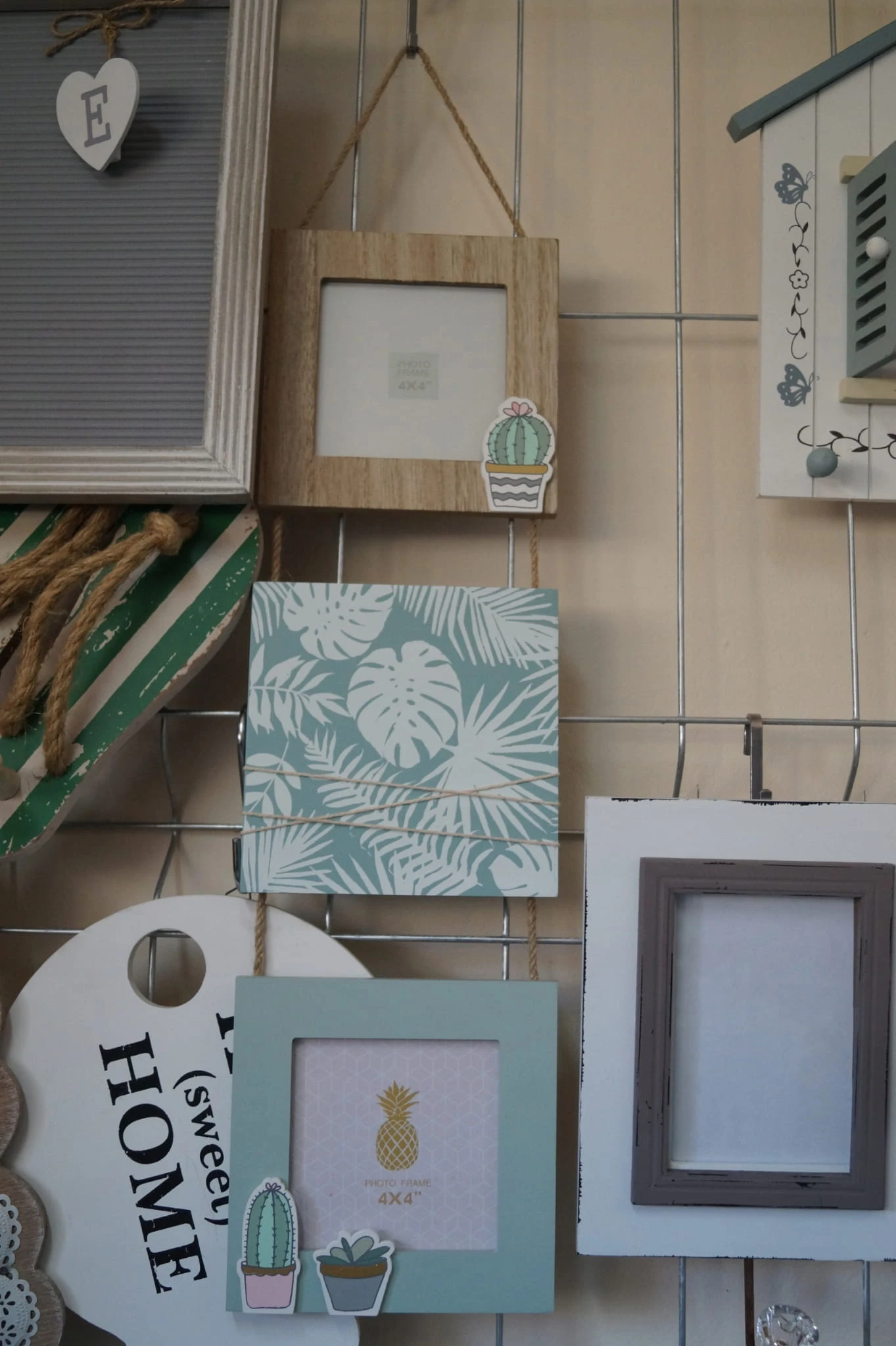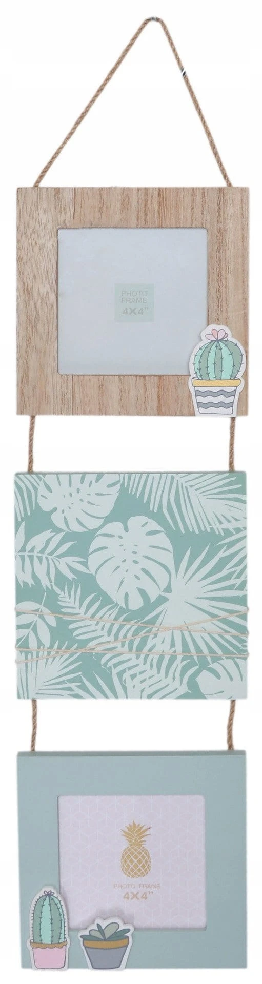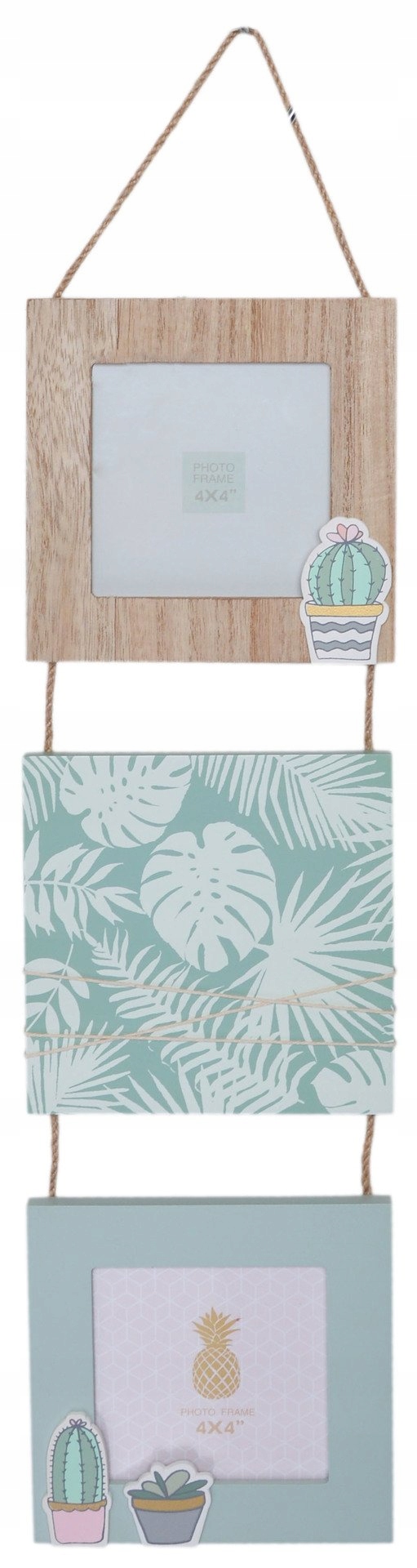 Uroczy i ciekawy zestaw ramek na zdjęcia w kolorze zielonym. Lekka stylistyka z kaktusami i kwiatami oraz pastelowy i miętowy kolor pasuje idealnie do ożywienia każdej aranżacji.