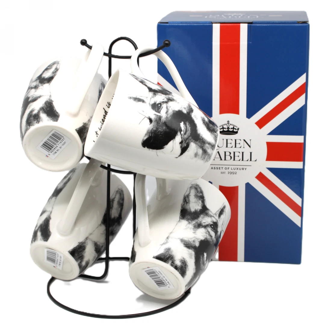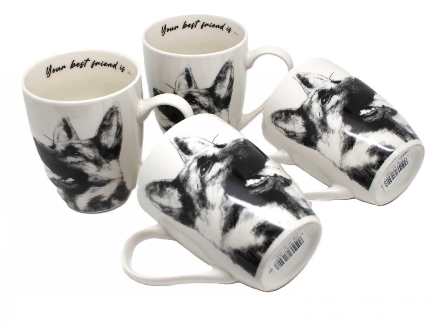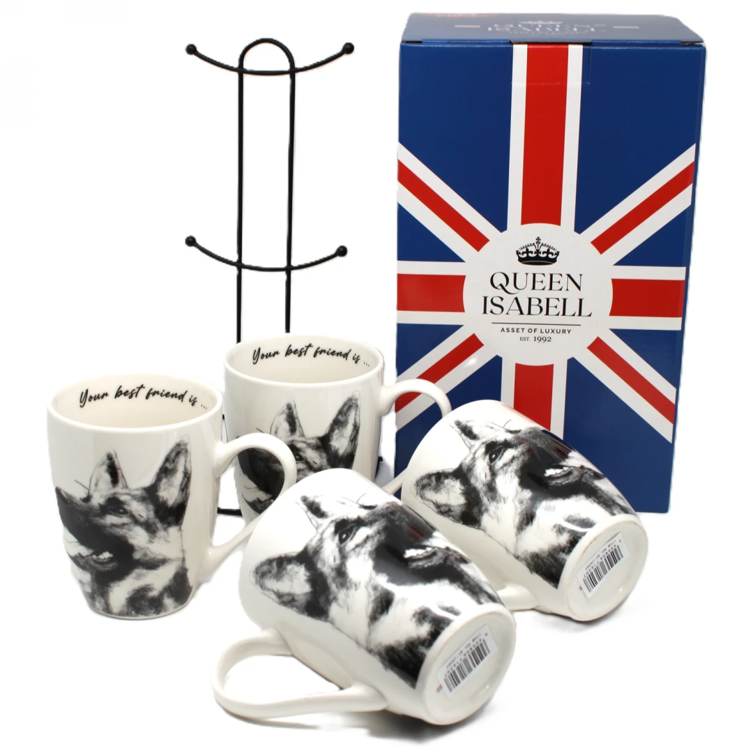 ZESTAW 4 KUBKÓW NA STOJAKU - OWCZAREK NIEMIECKI 350ml