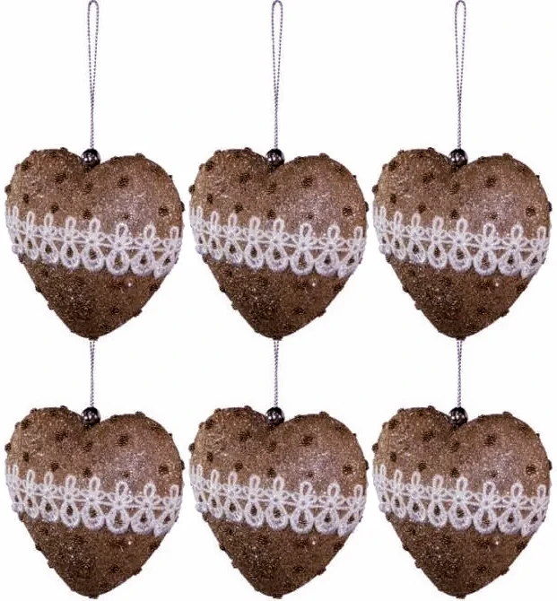 Komplet 6 bombek w kształcie serc