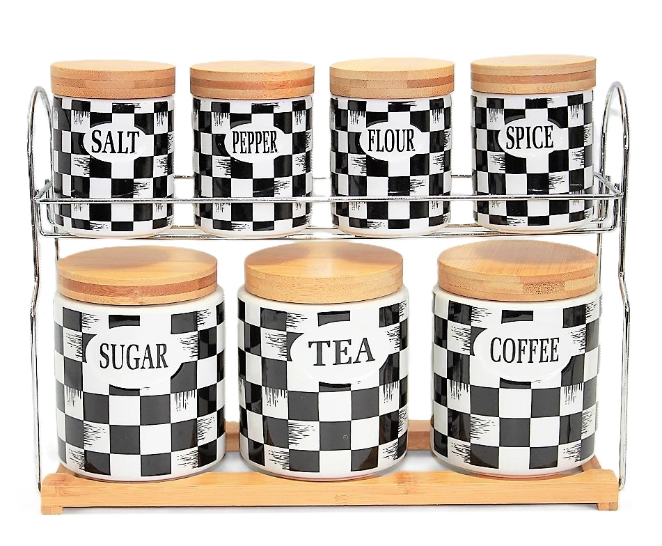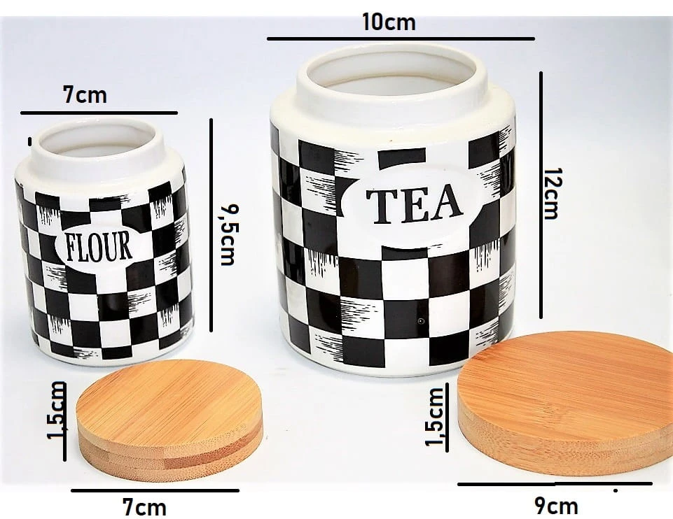 ZESTAW 7 CERAMICZNYCH POJEMNIKÓW Z BAMBUSOWYMI PRZYKRYWKAMI