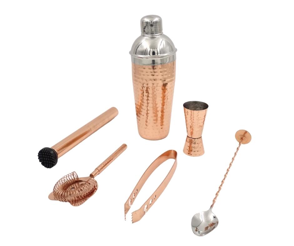 ZESTAW BARMAŃSKI 6 ELEMENTÓW POKRYTY MIEDZIĄ