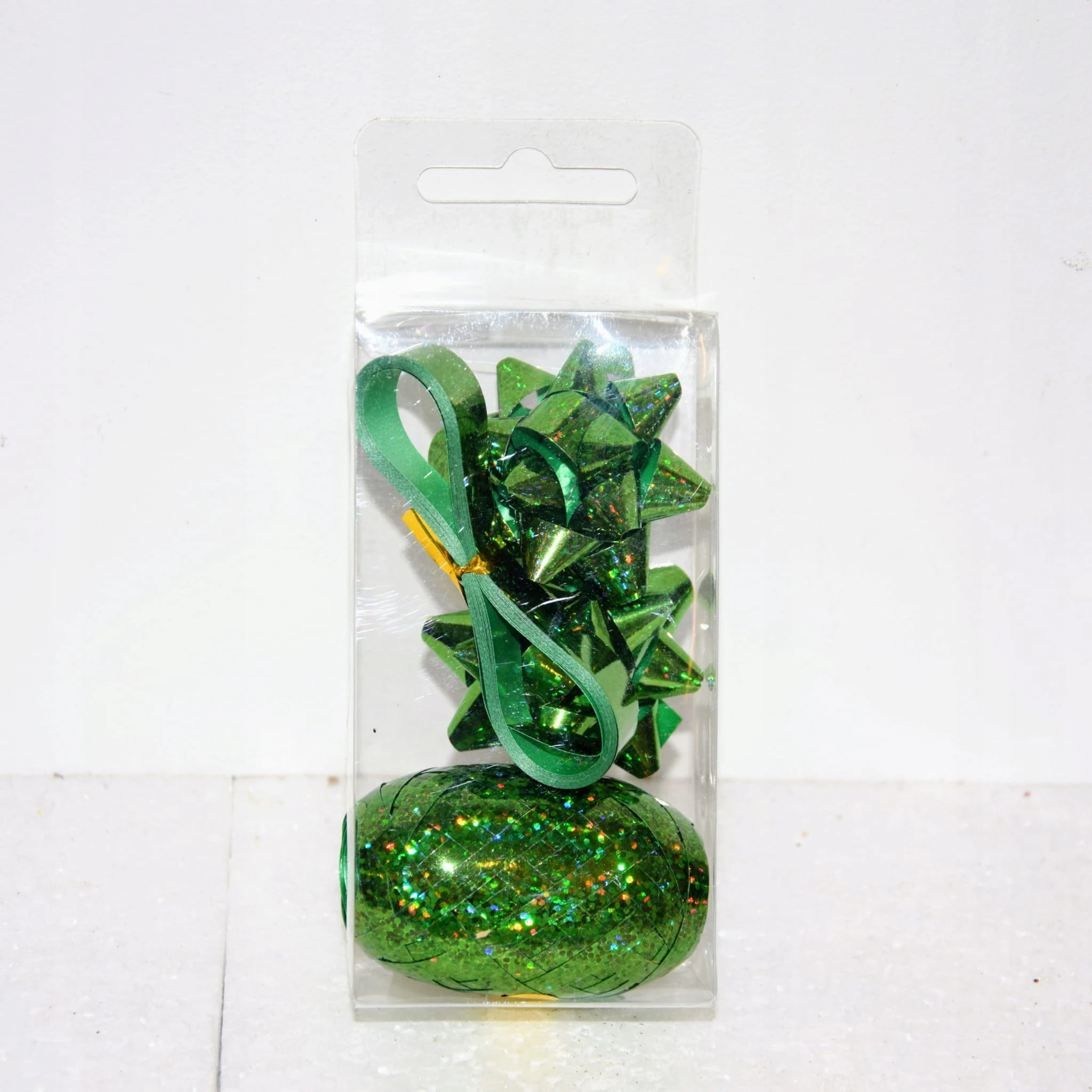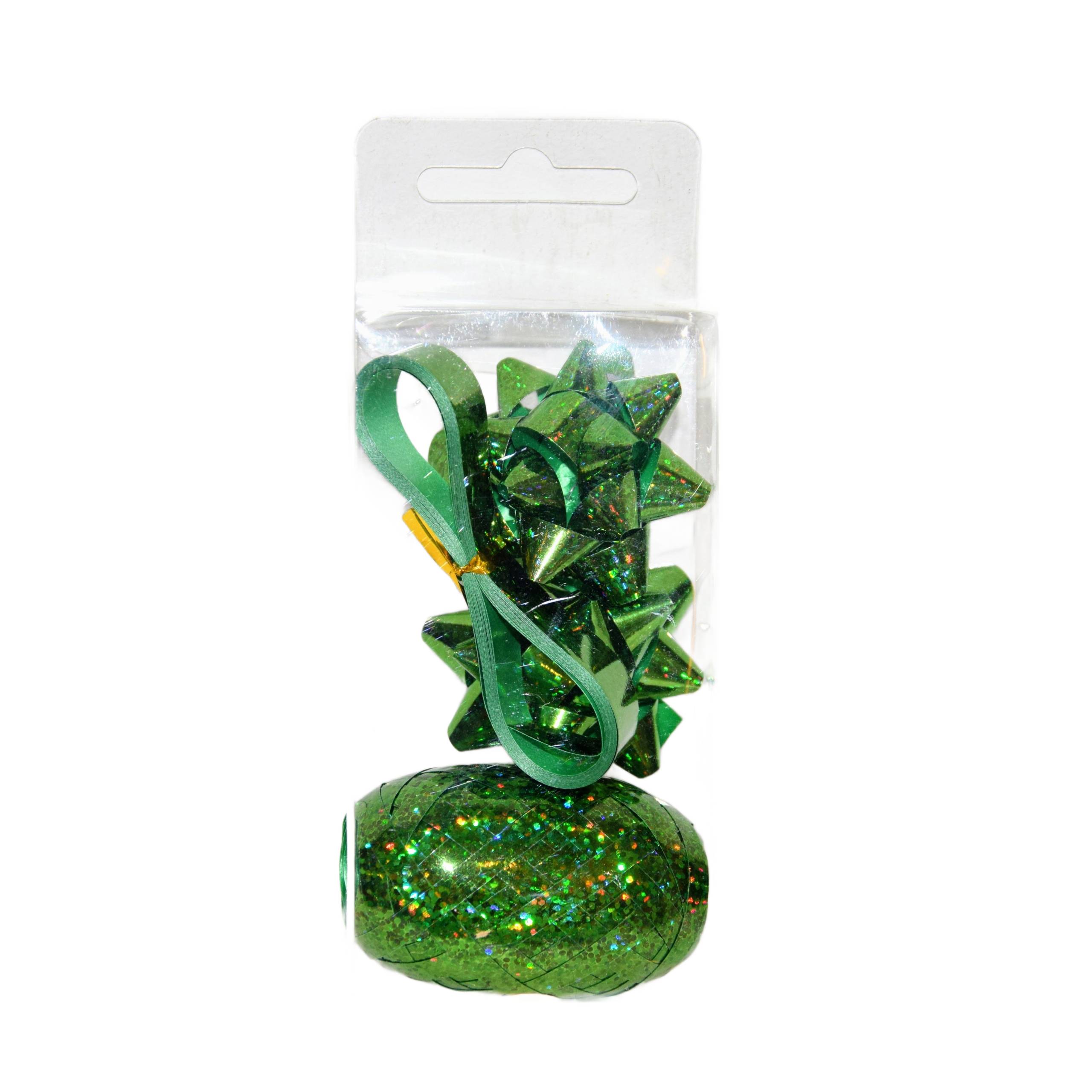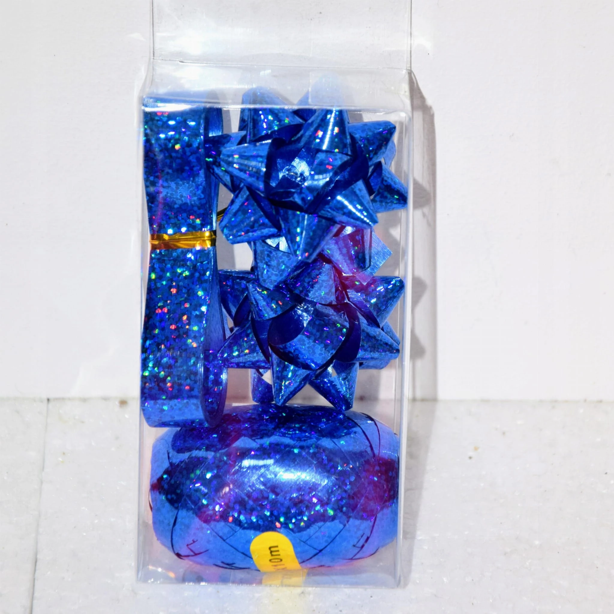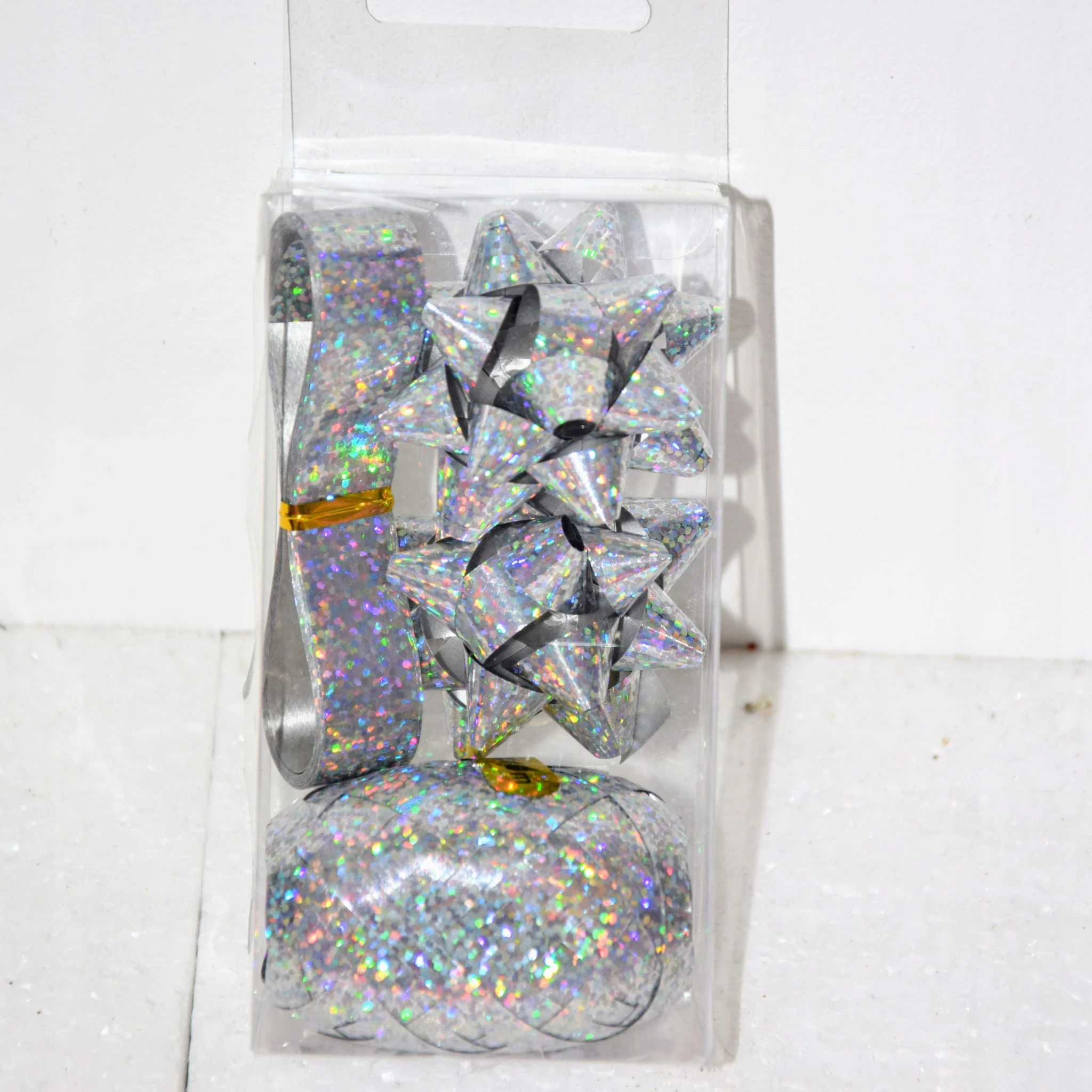 gotowy zestaw do pakowania prezentów zawierający dwie rozetki i wstążki w 2 szerokościach.