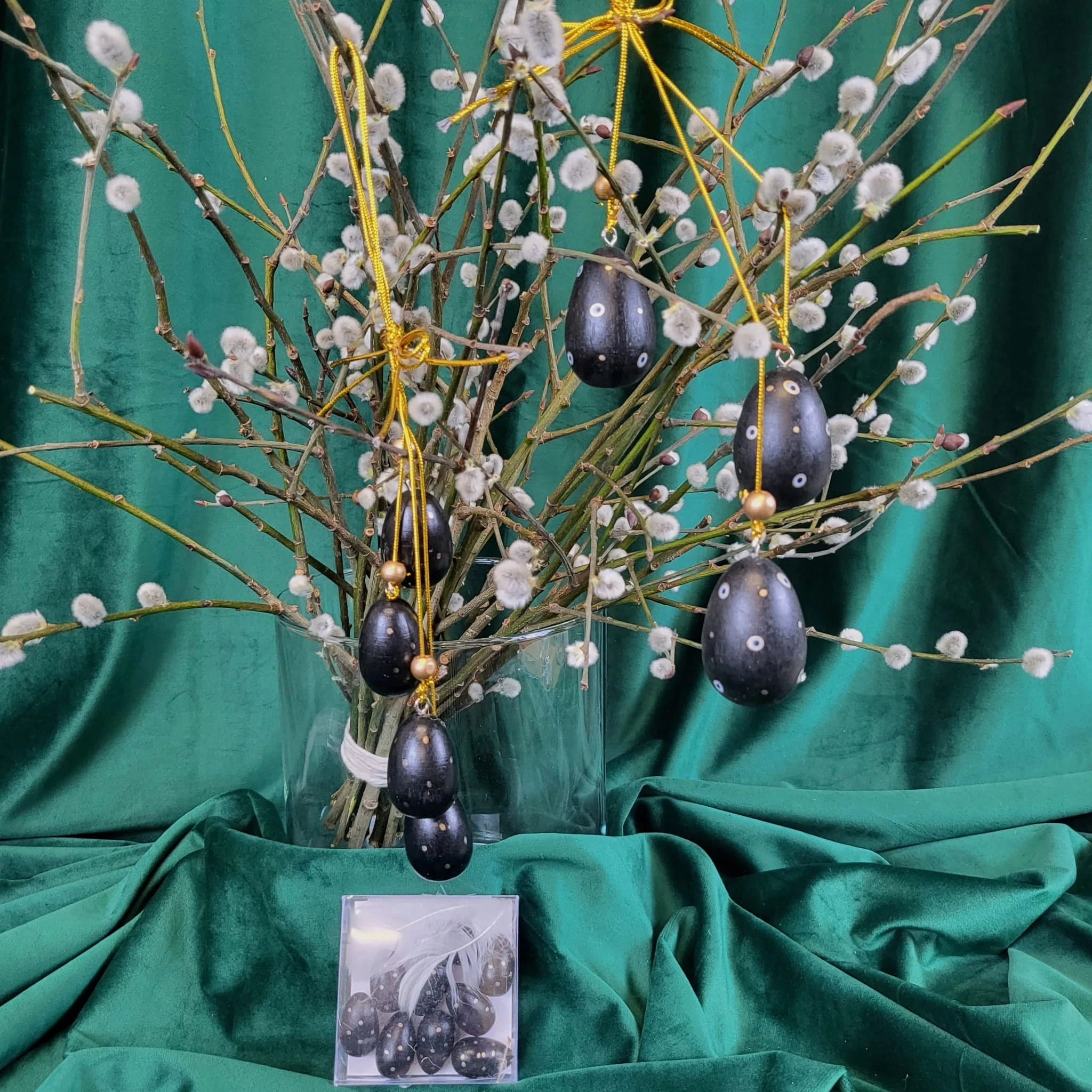 ZESTAW JAJKA CZARNE W KROPKI KOMPLET 9 SZTUK