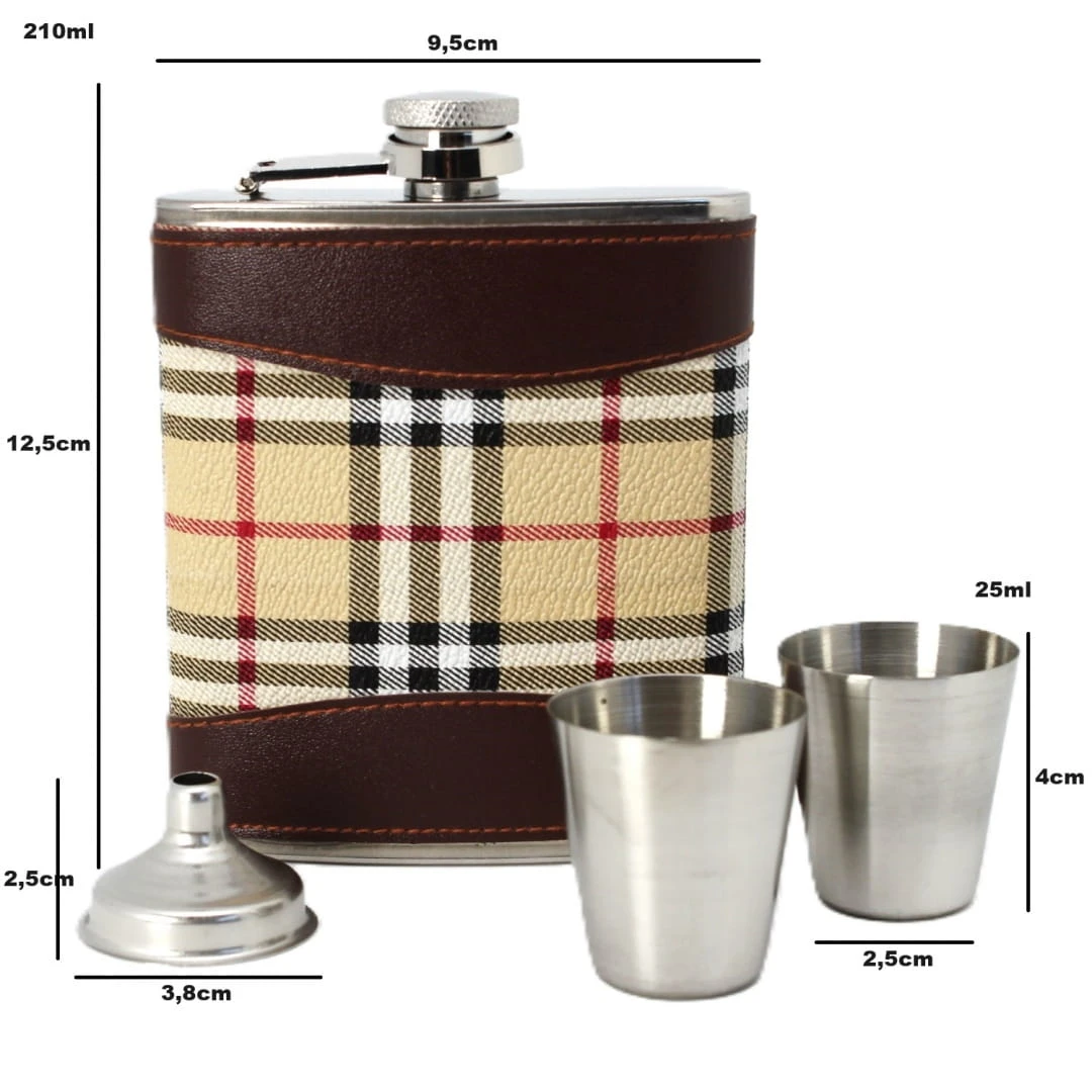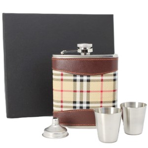 Elegancki zestaw prezentowy piersiówka + 2 kieliszki + lejek w skóropodobnym obiciu.