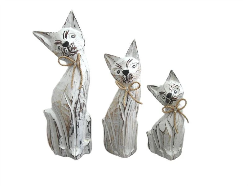 Zestaw 3 drewnianych kotów w różnej wysokości: 15cm, 20cm i 25cm.