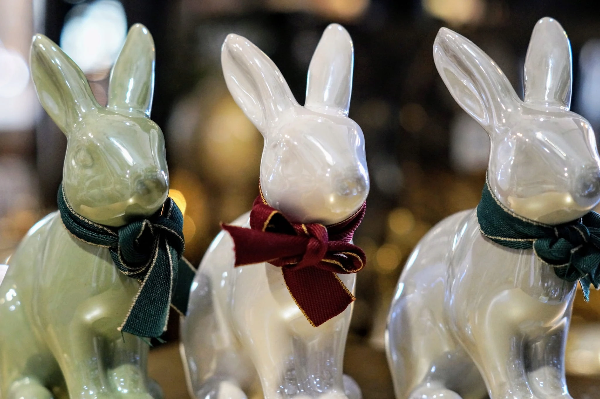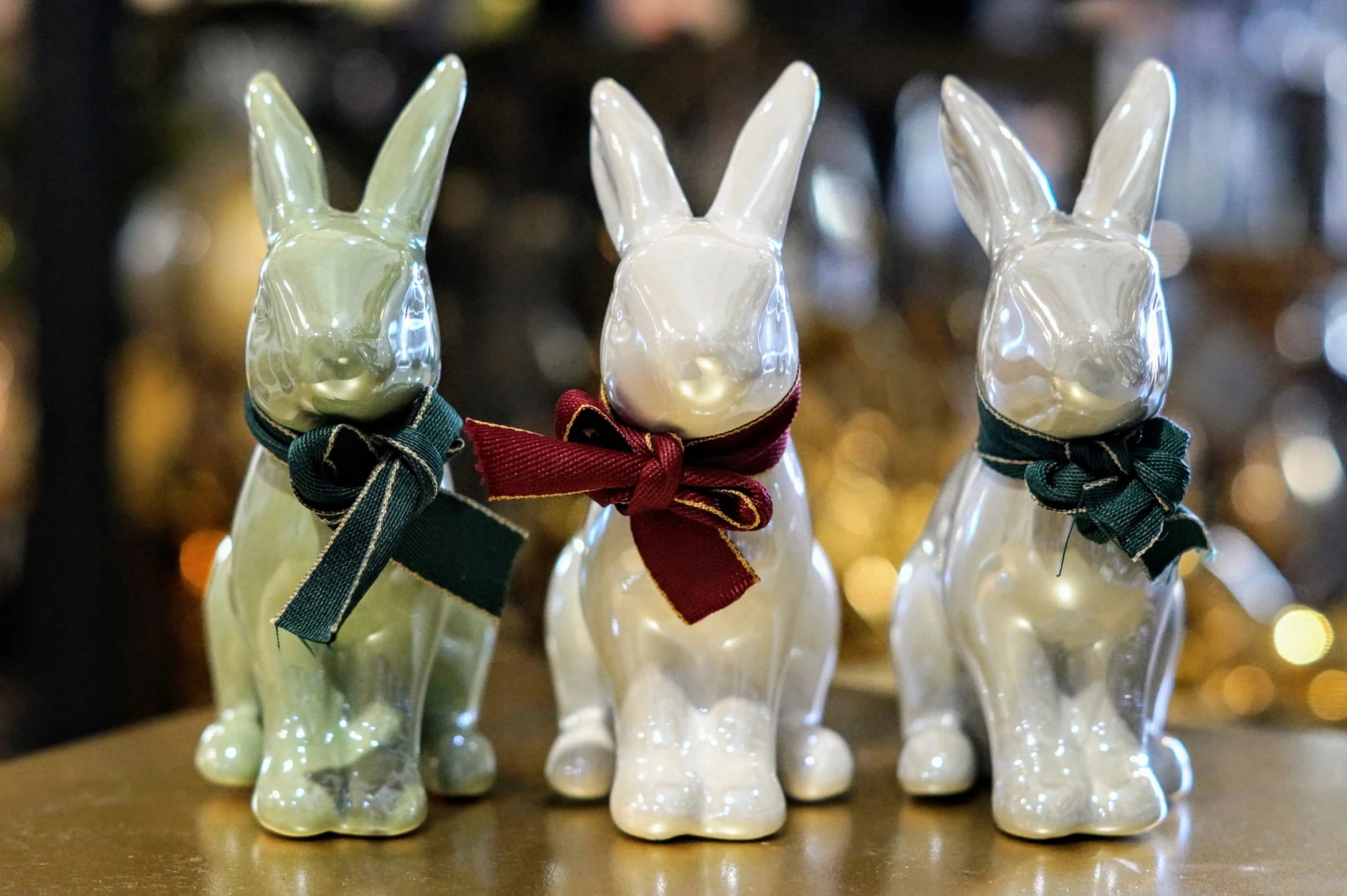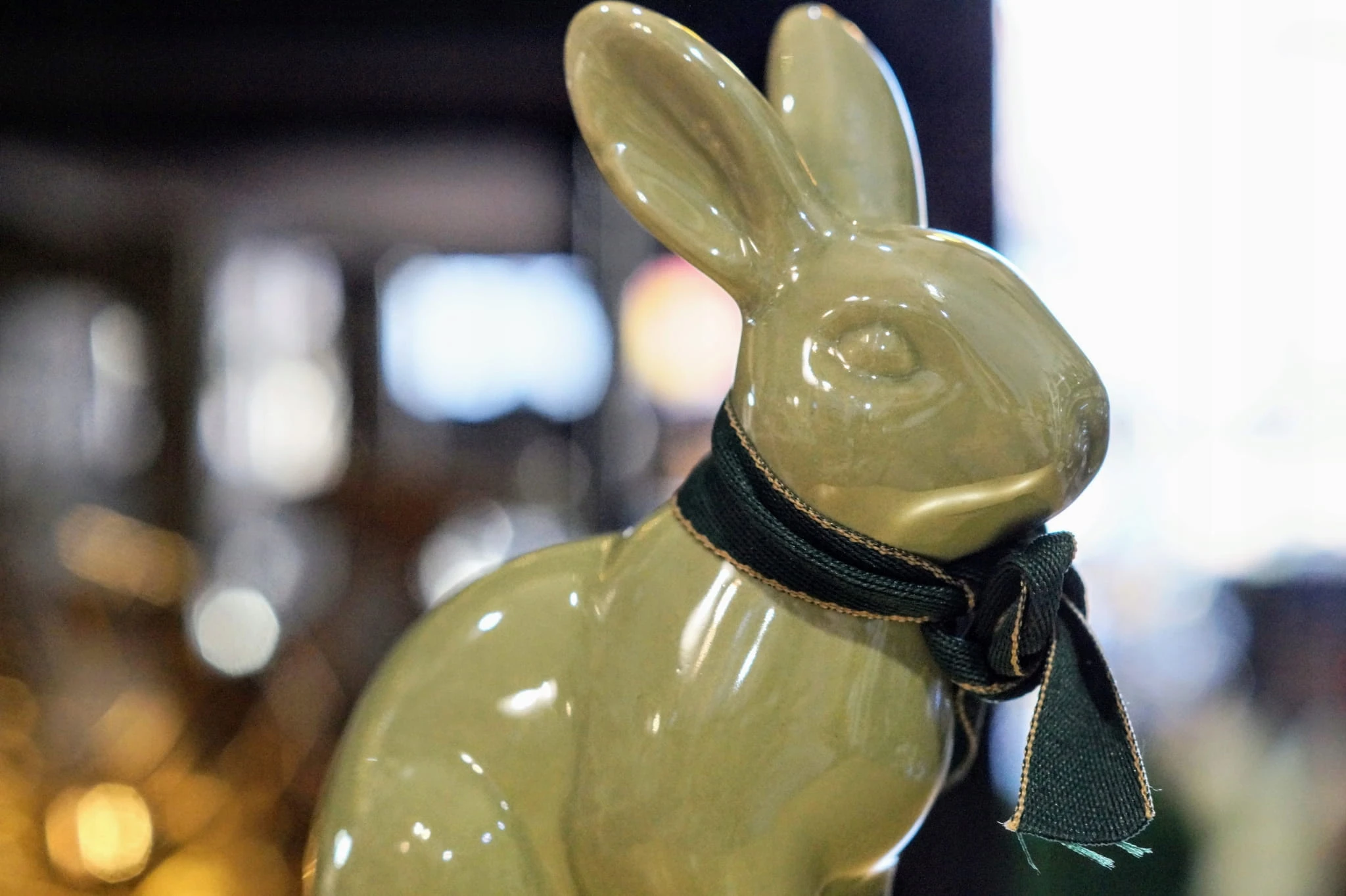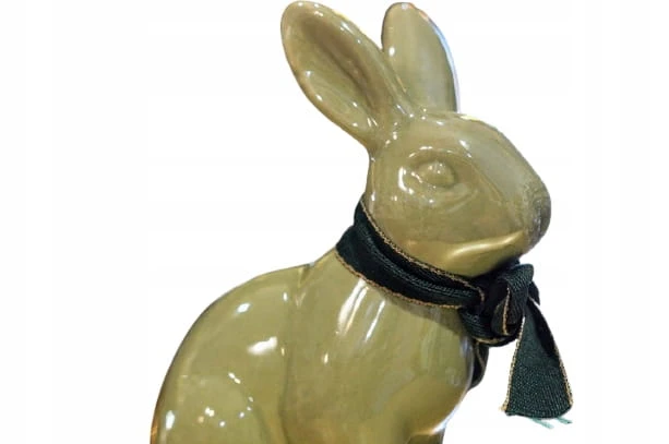 Ceramiczny zając siedzący.