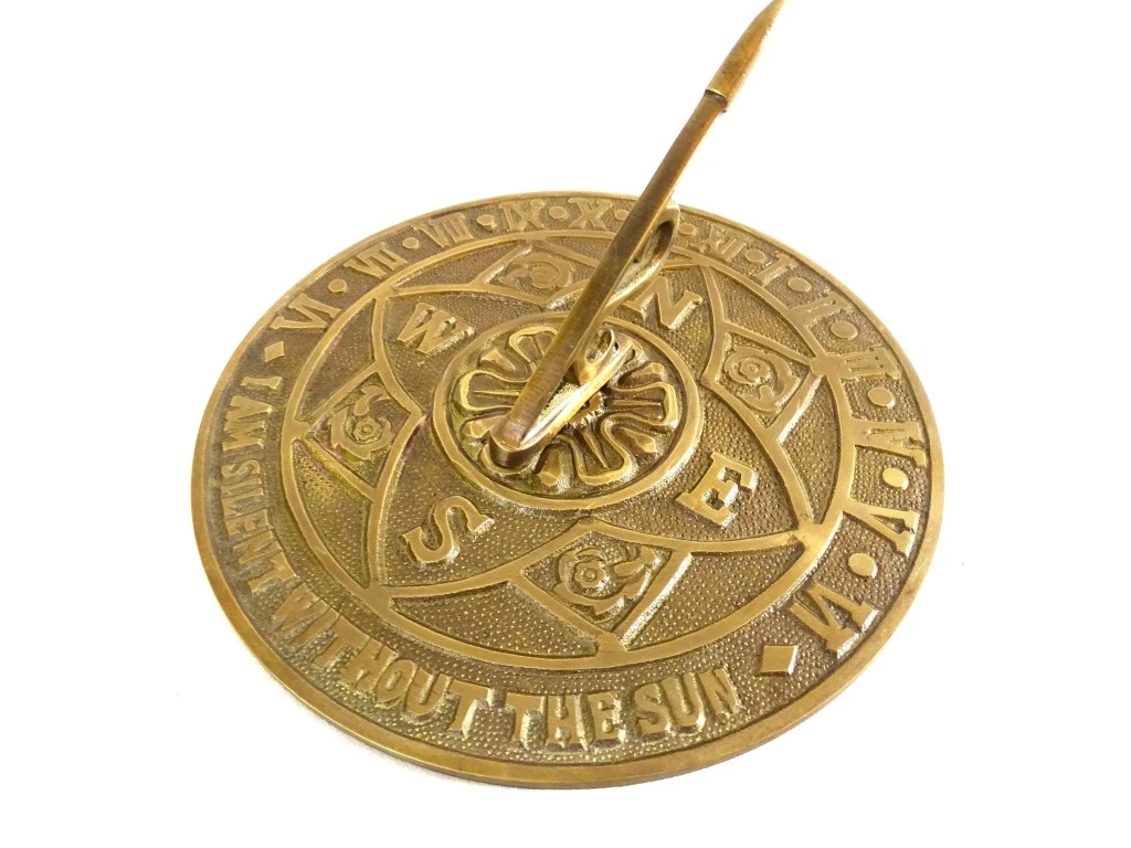 Zegar Słoneczny do ogrodu Kwiat wzbogaci przestrzeń zewnętrzną dając wgląd w rzeczywisty czas lokalny. Tarczą zegara jest płaska powierzchnia w kształcie koła ze zdobieniami florystycznymi, różą wiatrów, cyframi rzymskimi reprezentującymi godziny oraz napisem: „"I am silent without the sun" - Milczę bez słońca. Gnomon ustawiony pod kątem będzie rzucał cień na lokalną godzinę.