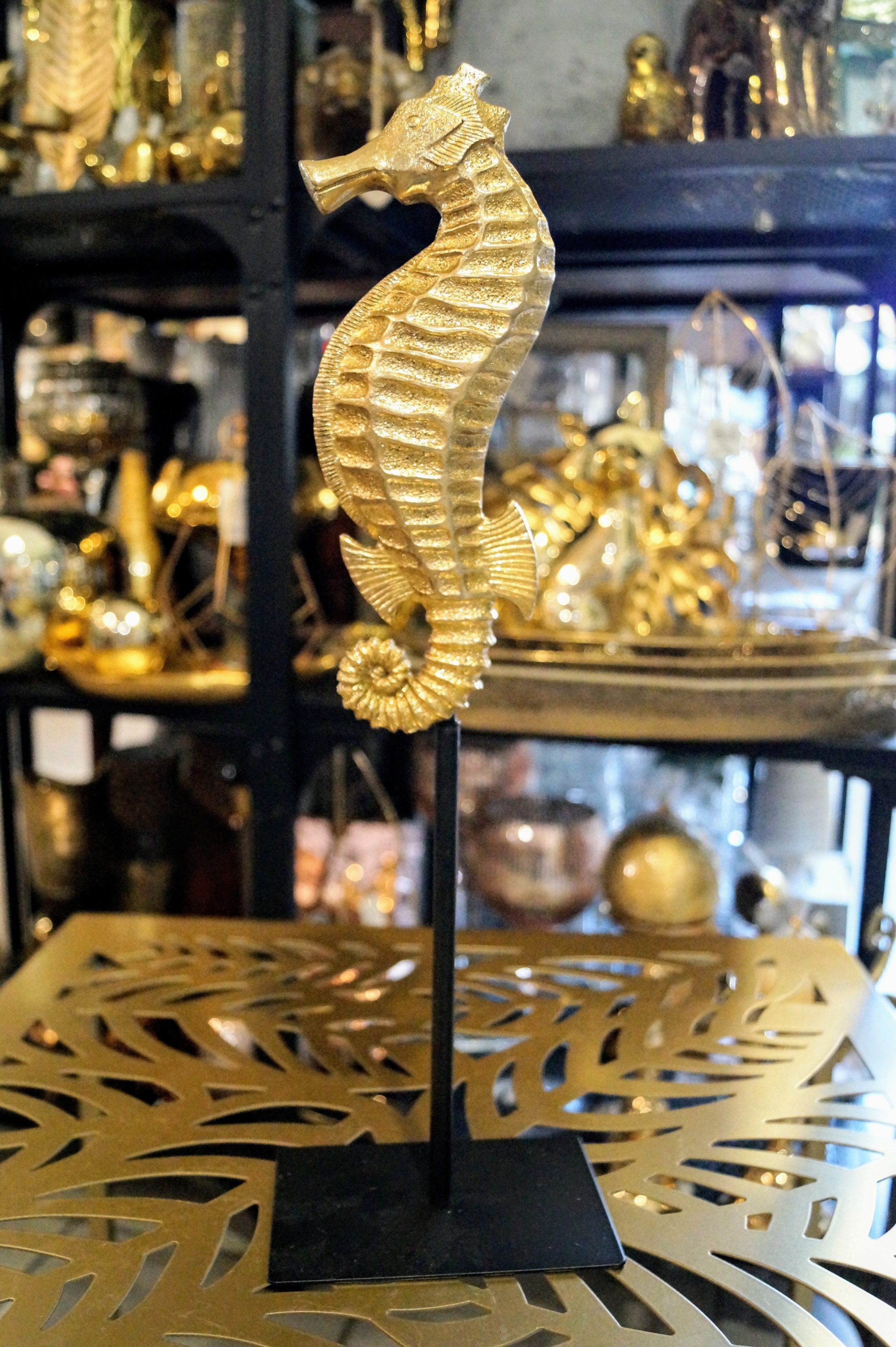 Figurka konik morski w kolorze złotym doda każdemu wnętrzu kunsztu i stylu. To doskonały pomysł na prezent dla osoby kochającej luksusowe wyposażenie wnętrz. Idealnie ożywi półkę czy komodę w każdym wnętrzu.